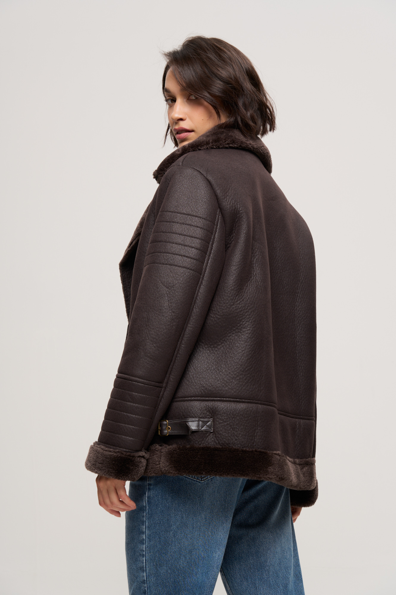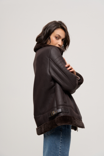 CAMPERA PU CON PIEL DESMONTABLE Y CINTO