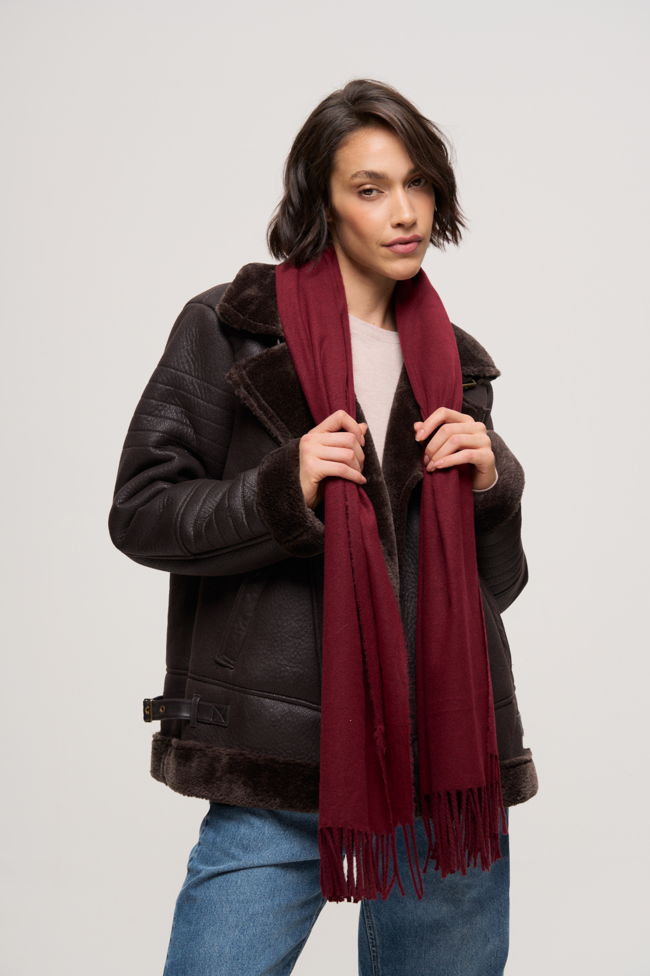 CAMPERA DE PANO CON DETALLES DE CUERO