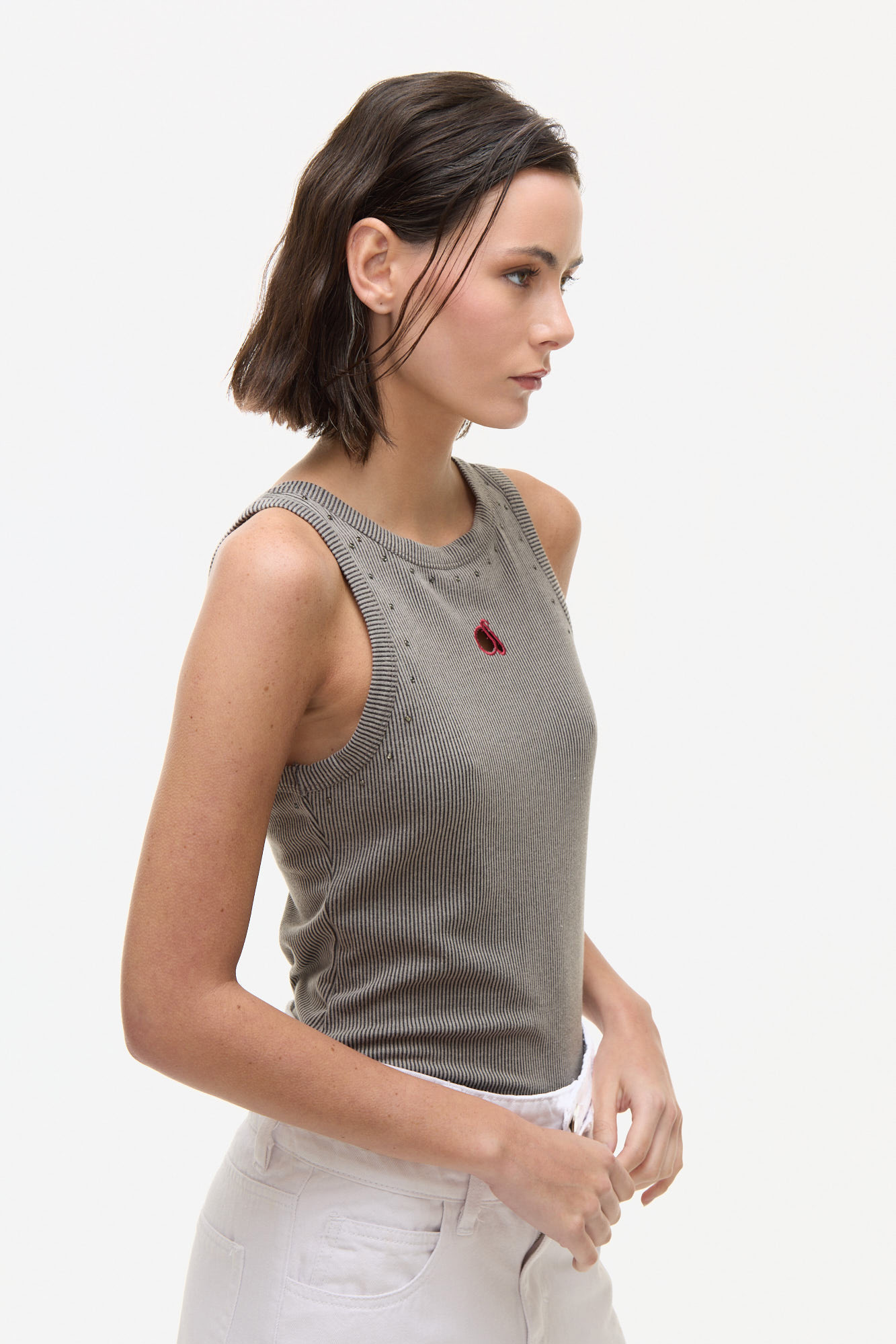BODY CONFECCIONADO EN TEJIDO MORLEY CON MEZCLA DE FIBRAS. DISEÑO DE CALCE ENTALLADO CON ESCOTE REDONDO Y SISAS AMPLIAS. PRESENTA DETALLES APLIQUE EN EL FRENTE QUE APORTAN UN ACENTO DISTINTIVO. CIERRE EN LA ENTREPIERNA CON BOTÓN PARA MAYOR COMODIDAD. 75% POLIÉSTER · 20% RAYÓN · 5% SPANDEX