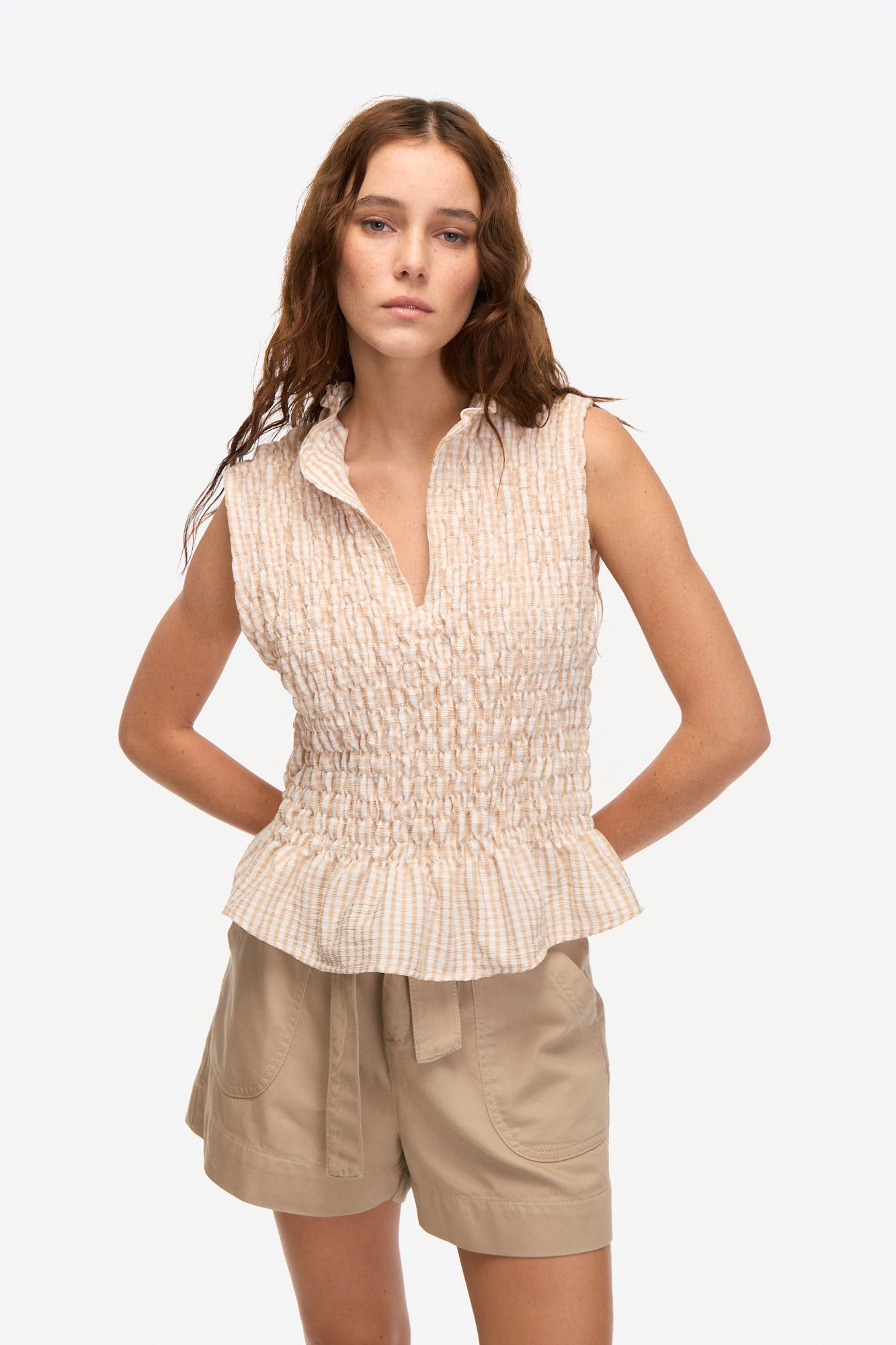 BLUSA VICHY BEIGE