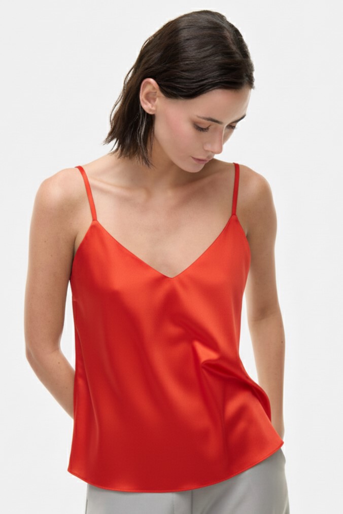 CONFECCIONADO EN POLIÉSTER. ESCOTE EN V Y BRETEL FINO REGULABLE. CALCE RELAJADO Y CAÍDA SUAVE. TERMINACIÓN LEVEMENTE REDONDEADA EN RUEDO.