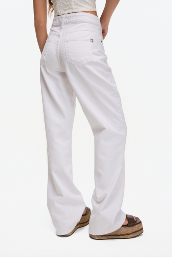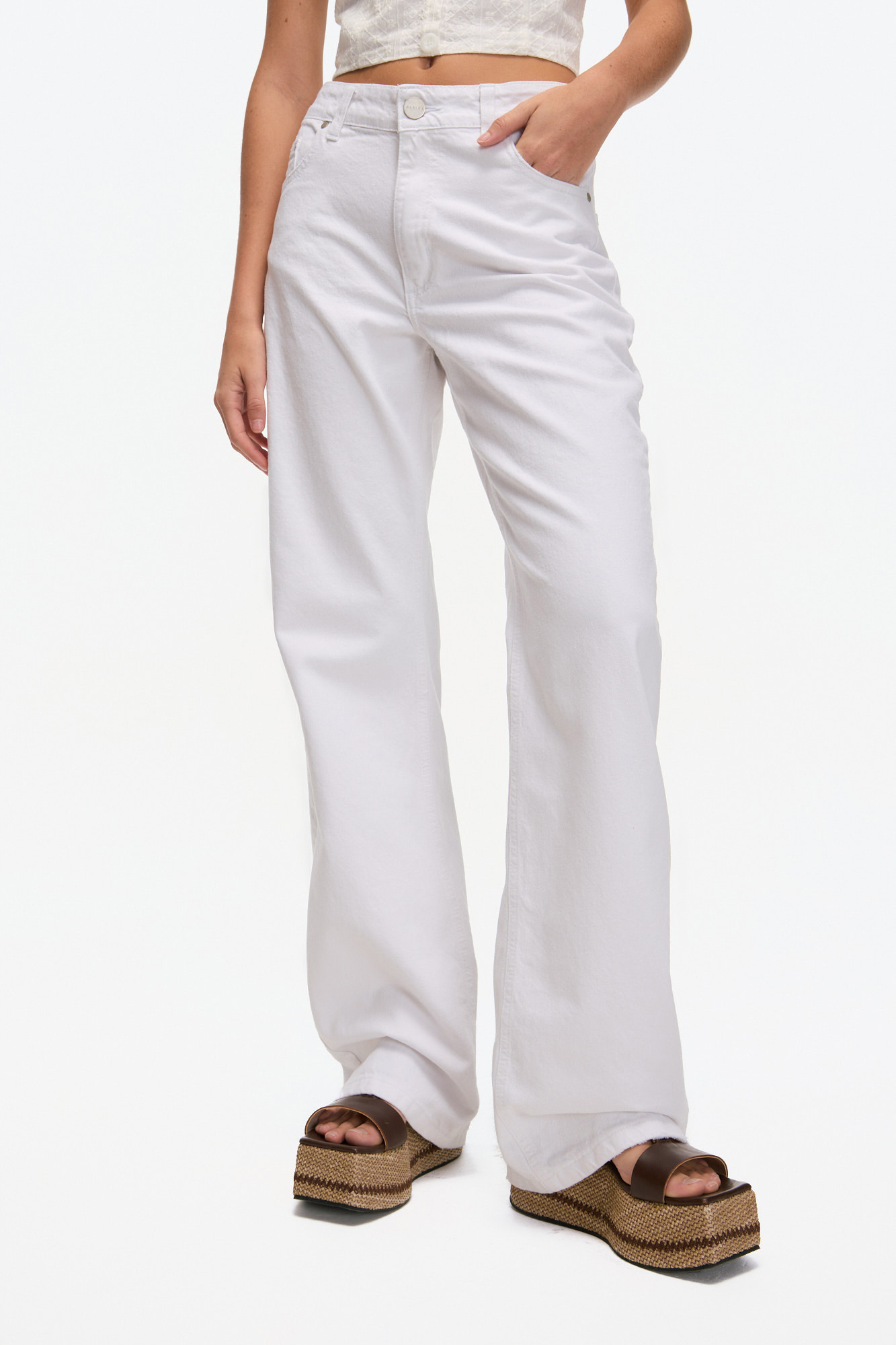 CONFECCIONADO EN DENIM ALGODÓN, DE SUPERFICIE SUAVE Y ESTRUCTURA FIRME. DISEÑO DE PIERNA AMPLIA, TIRO MEDIO Y CALCE RELAJADO QUE APORTA COMODIDAD Y VERSATILIDAD. CUENTA CON BOLSILLOS CLÁSICOS, PASACINTOS Y CIERRE FRONTAL CON BOTÓN METÁLICO. 100% ALGODÓN.
