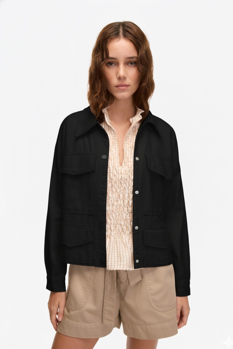 CONFECCIONADA EN GABARDINA DE ALGODÓN, DE TEXTURA FIRME Y SUAVE. DISEÑO OVERSIZE CON CUELLO CAMISERO Y BOTONES A LA VISTA. CUENTA CON BOLSILLOS PLAQUETAS EN EL FRENTE QUE APORTAN ESTILO UTILITARIO. TERMINACIÓN RECTA Y CALCE CÓMODO. 100% ALGODÓN.
