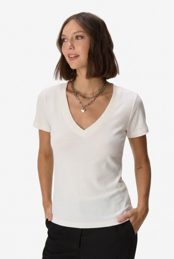 Confeccionada en tejido morley de rayón con spandex, suave y elástico. Diseño de mangas cortas, escote en “V” y silueta al cuerpo con largo a la cadera. 93% rayón – 7% spandex.