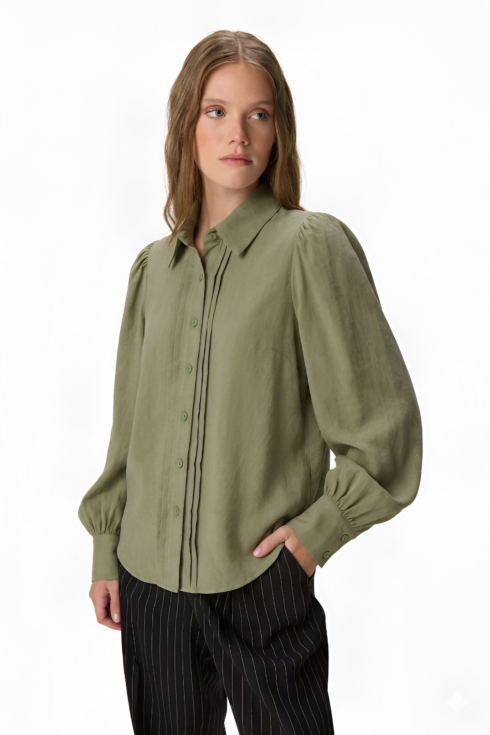 CAMISA MANGA GLOBO VERDE