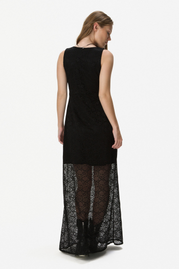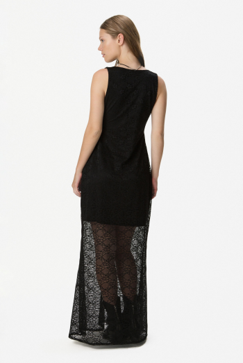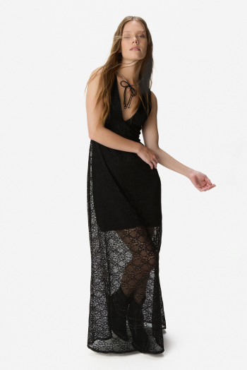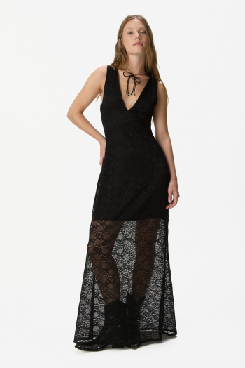 VESTIDO DE ENCAJE ESCOTE V NEGRO