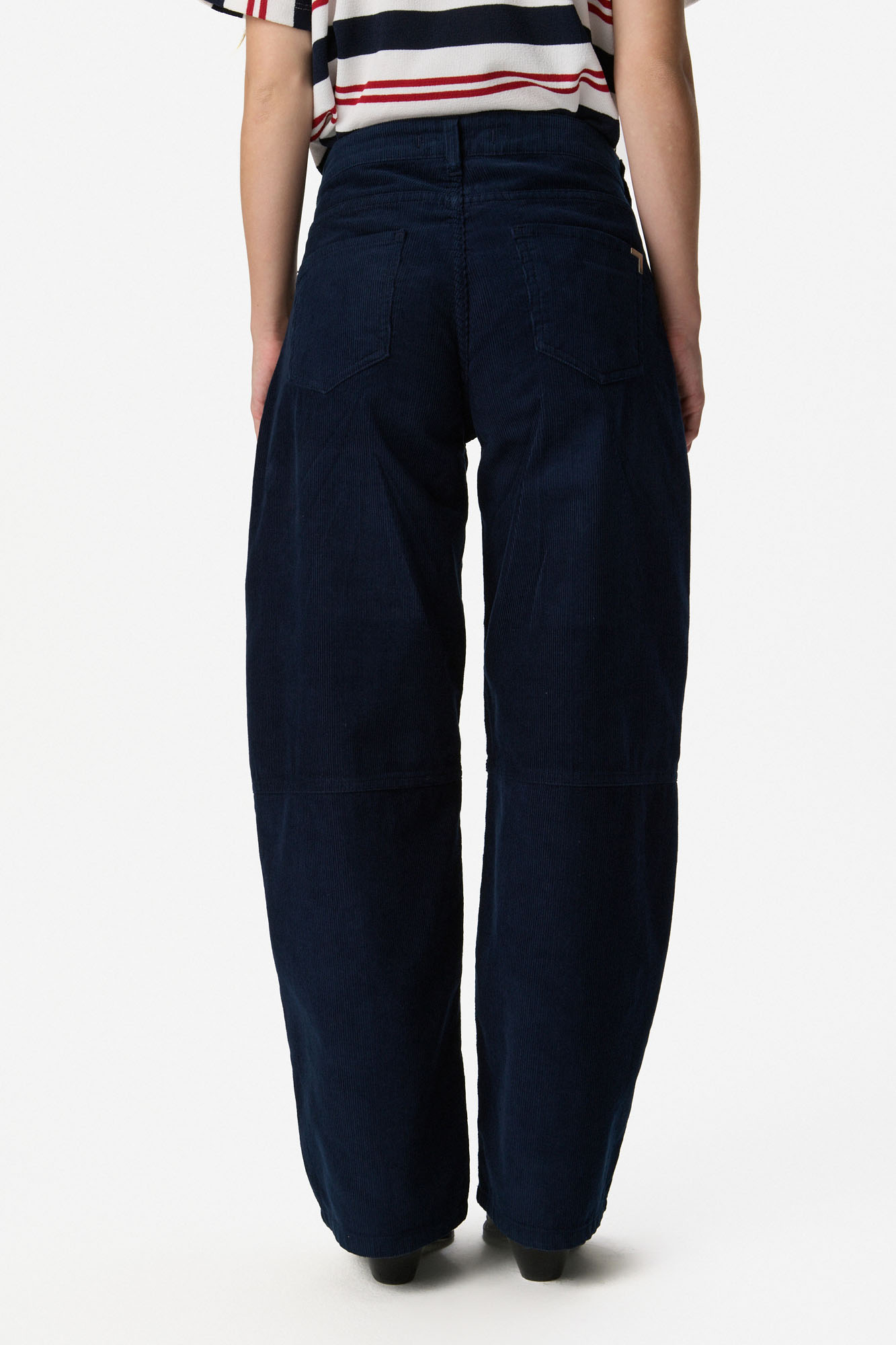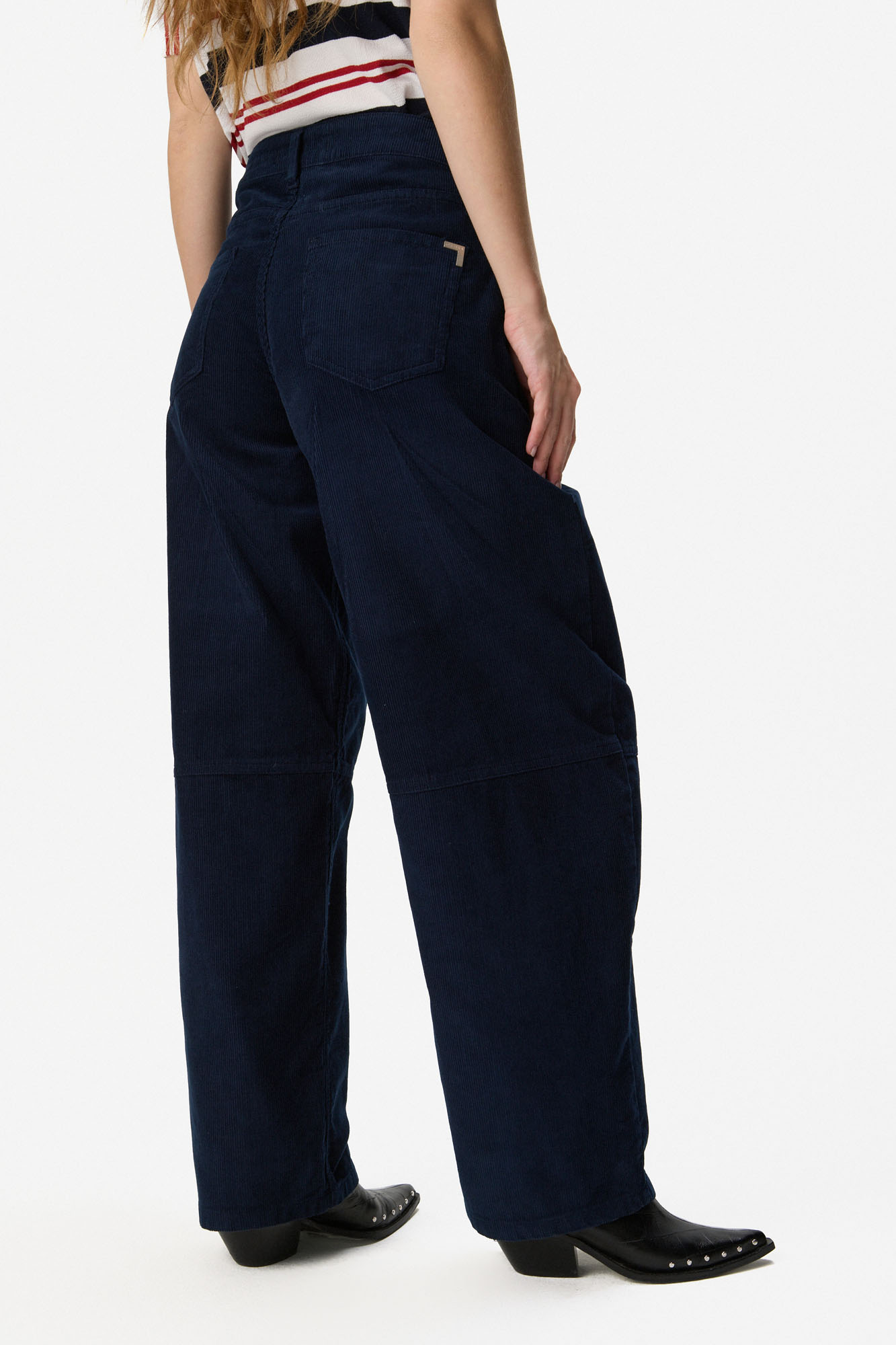 Pantalón baggy confeccionado en corderoy de algodón, de textura suave y acanalada que aporta abrigo y estilo. Presenta tiro medio y calce holgado, brindando comodidad y un look relajado. Cuenta con bolsillos funcionales y cierre frontal, ideal para sumar a outfits casuales con un toque moderno. 100% algodón.