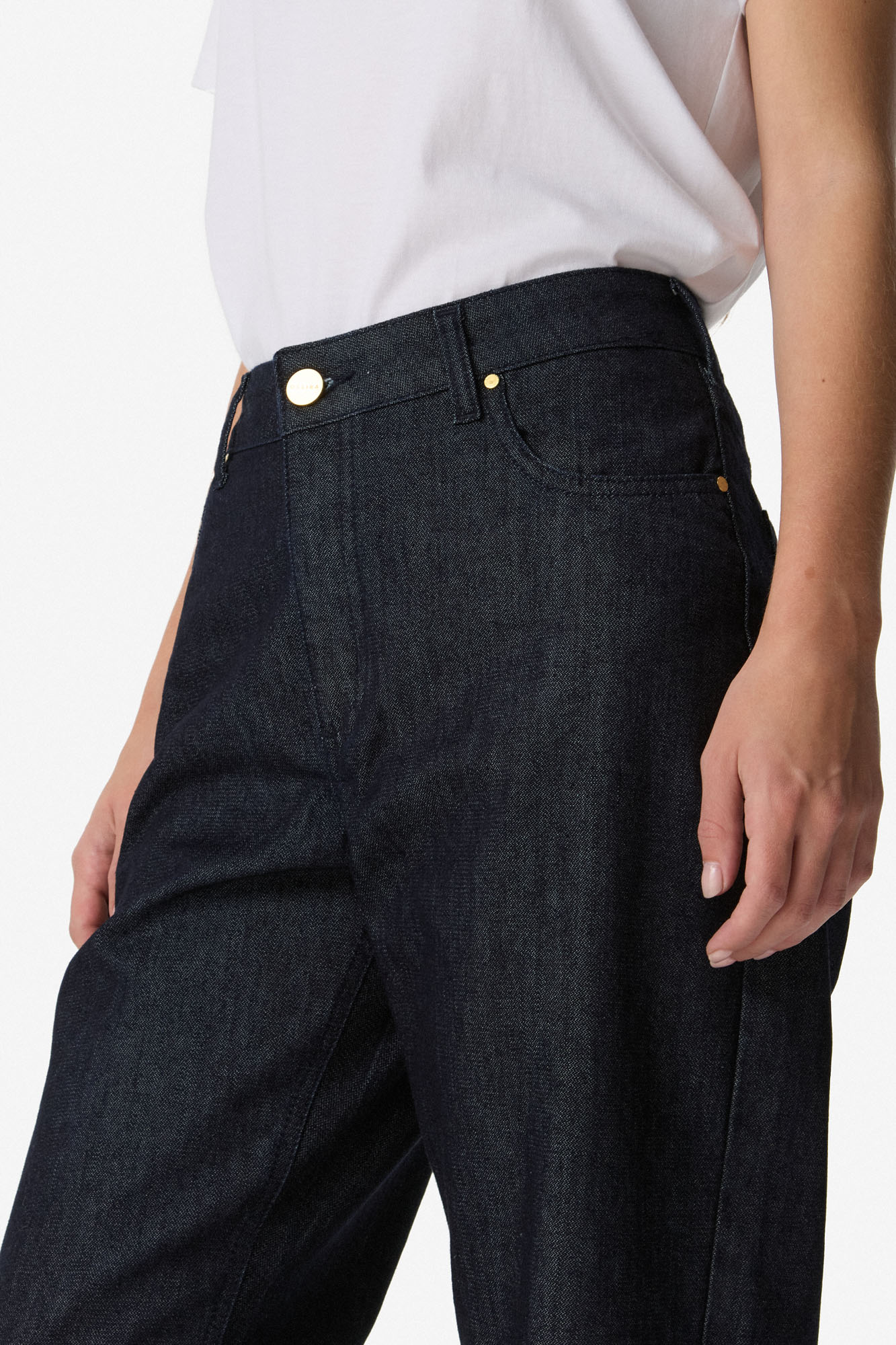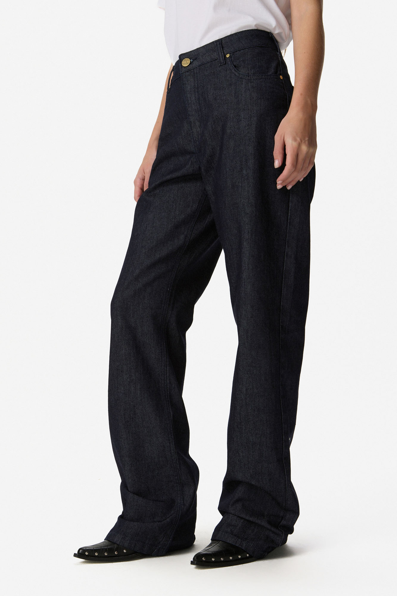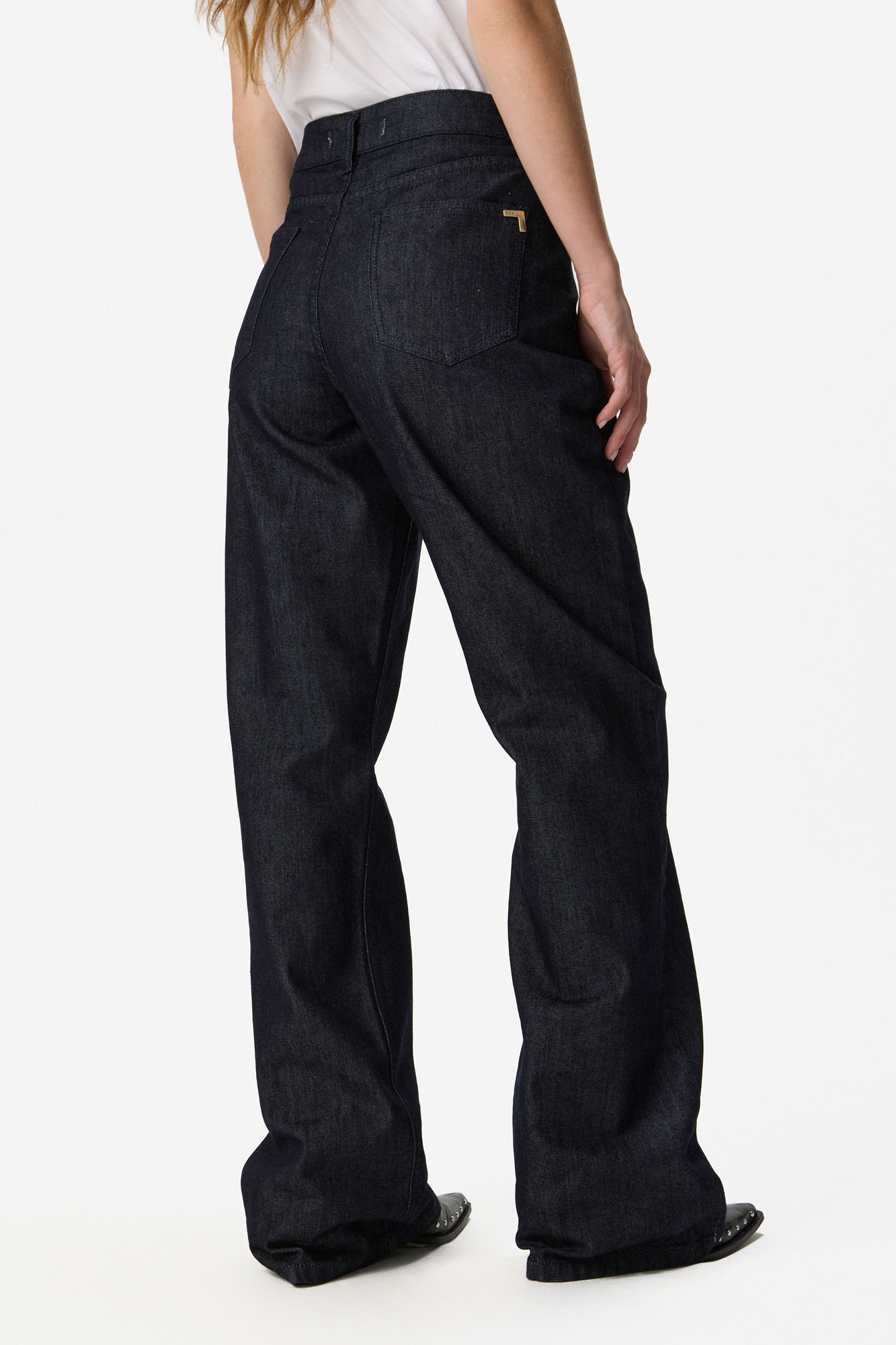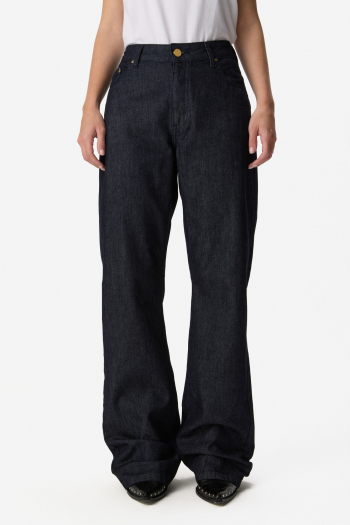 Jean de tiro alto confeccionado en denim de algodón. Silueta amplia de pierna recta, con bolsillos y cierre frontal con botón. 100% ALGODÓN. Lavar por separado.