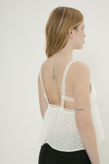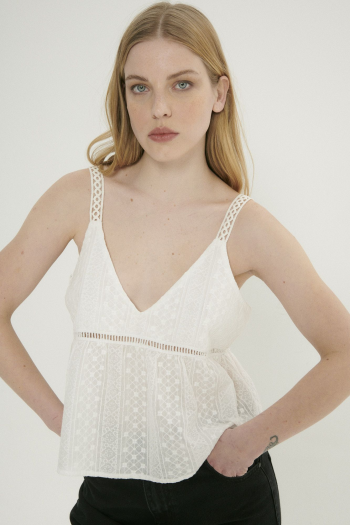 BLUSA DE BRODERIE CON GALÓN BLANCO