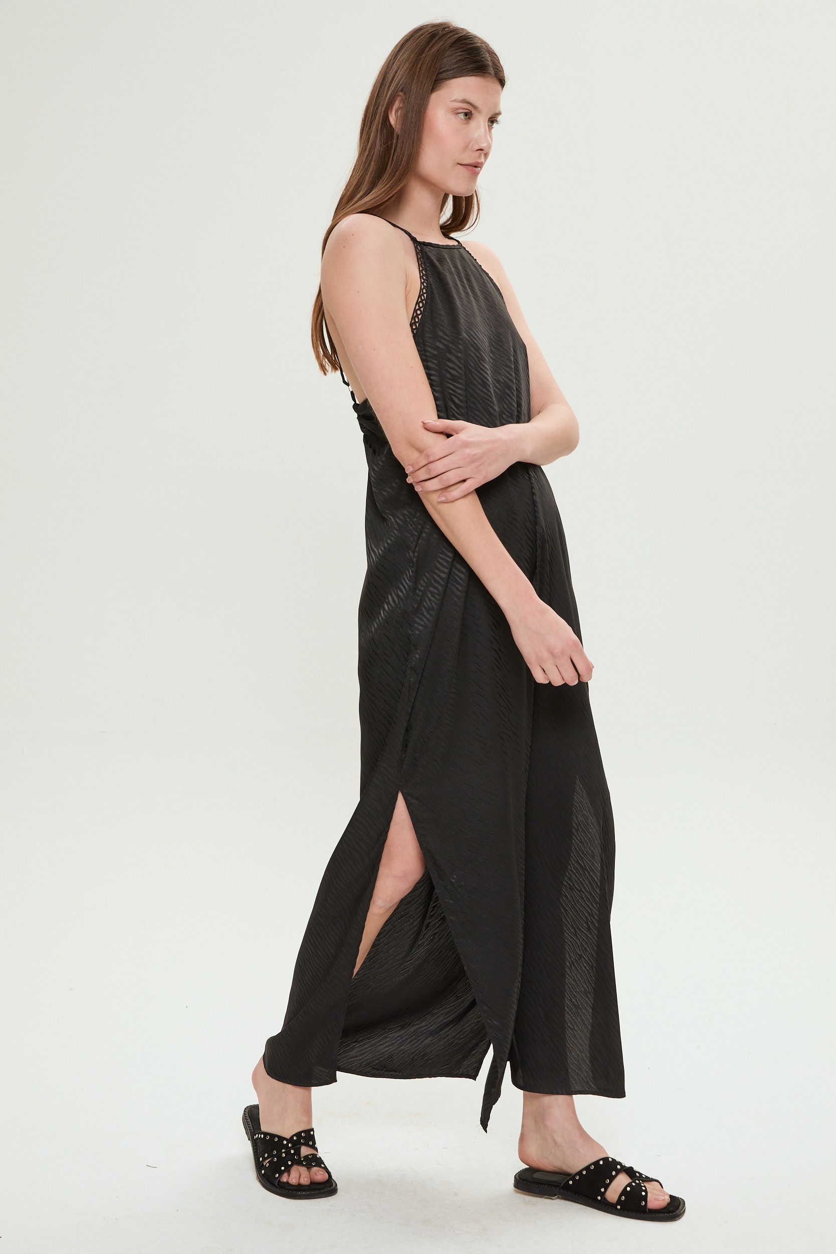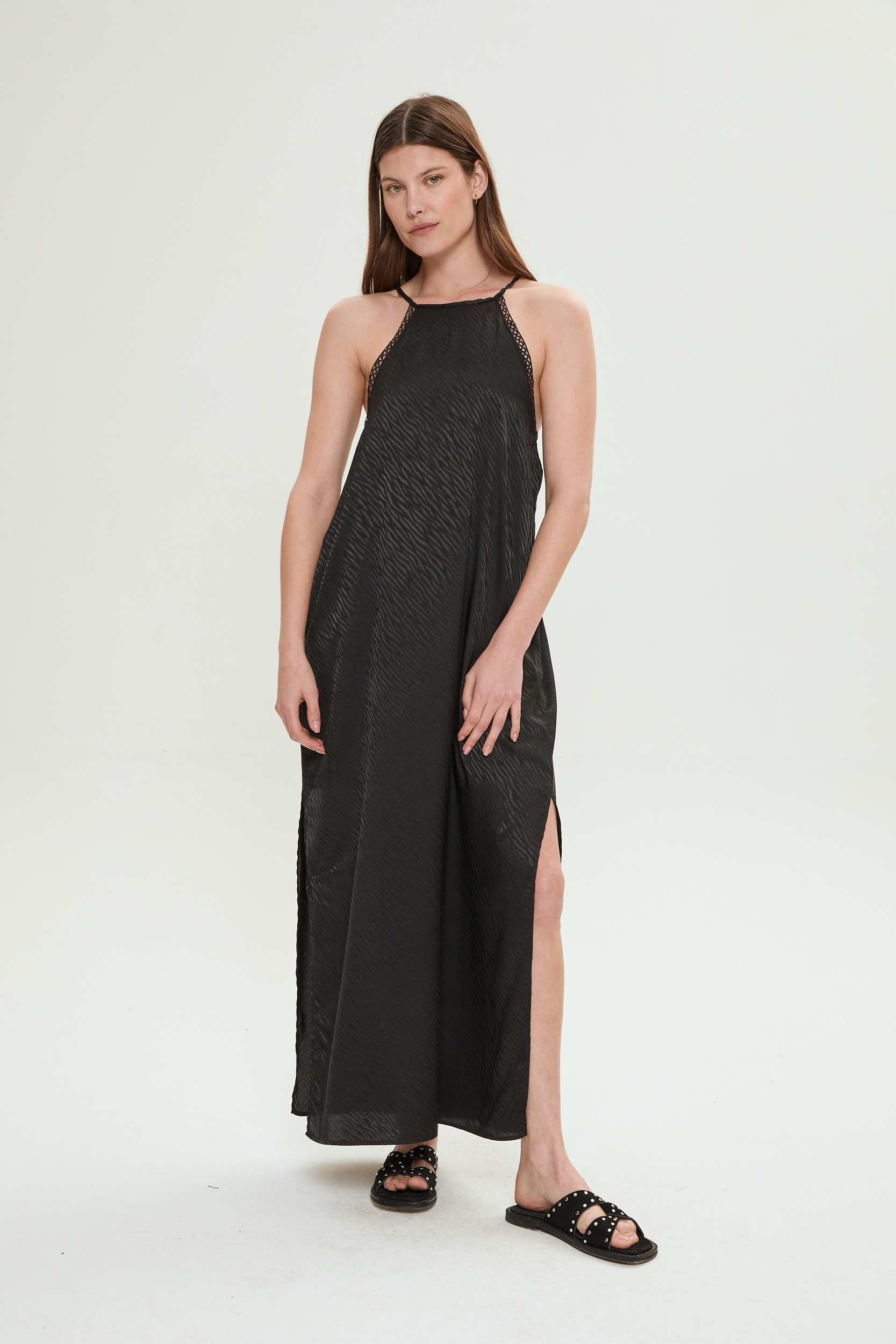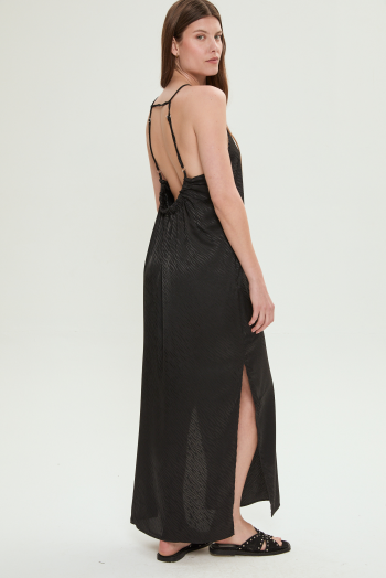 VESTIDO LARGO CON TAJO NEGRO