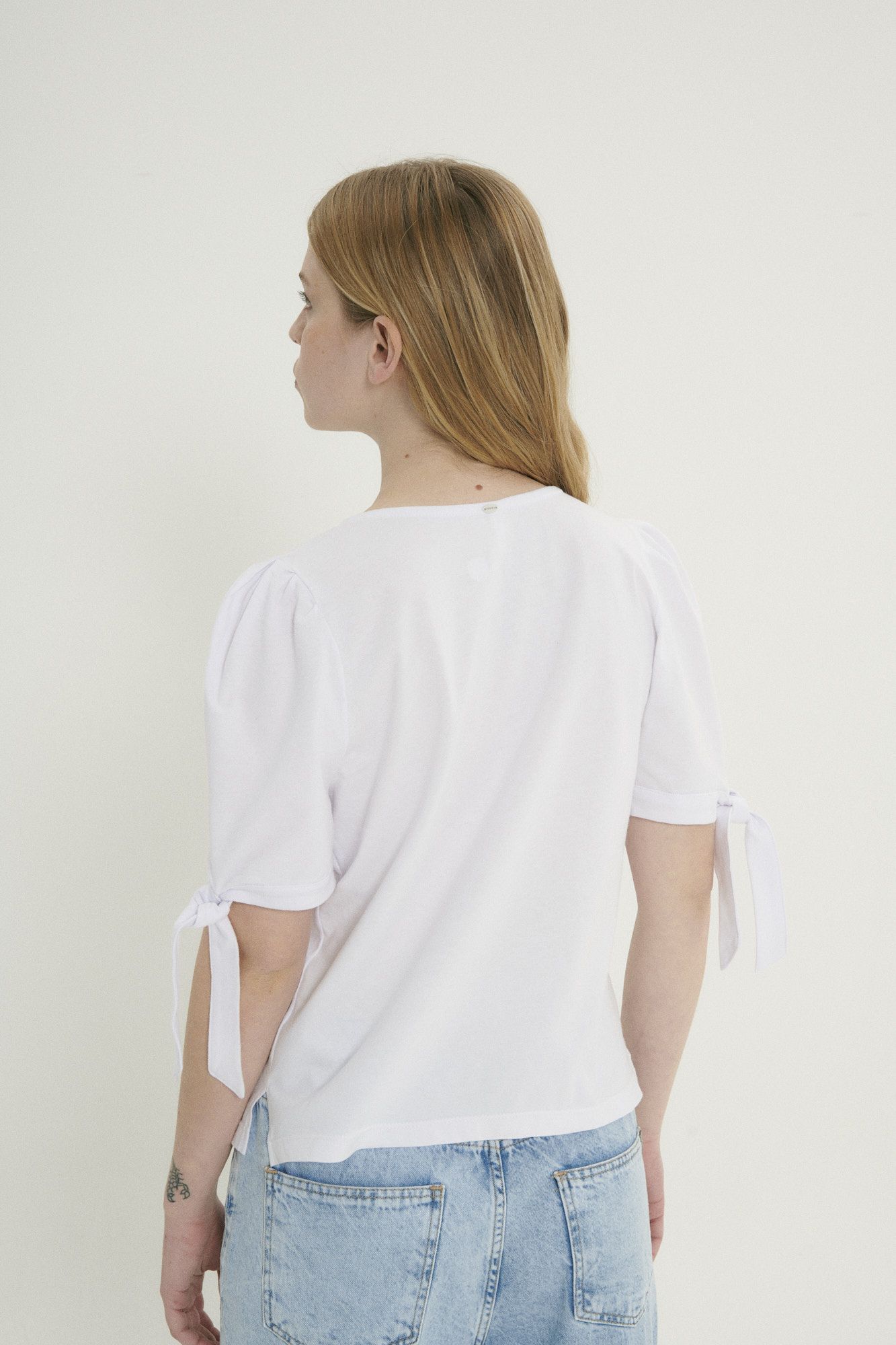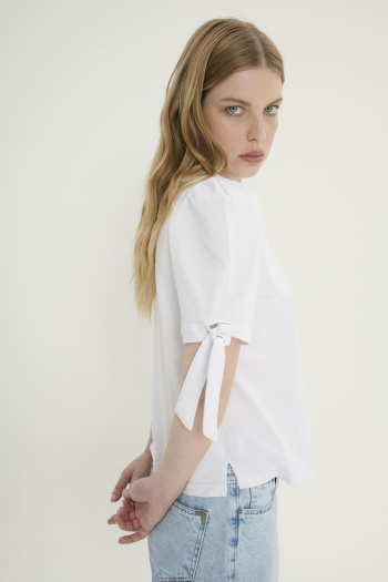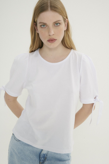 Remera con mangas princesa y un delicado lazo, perfecta para un look romántico y femenino.