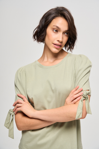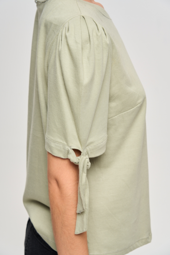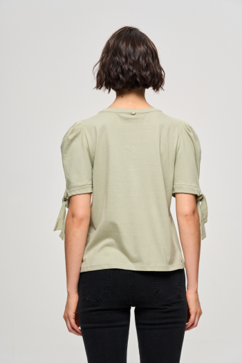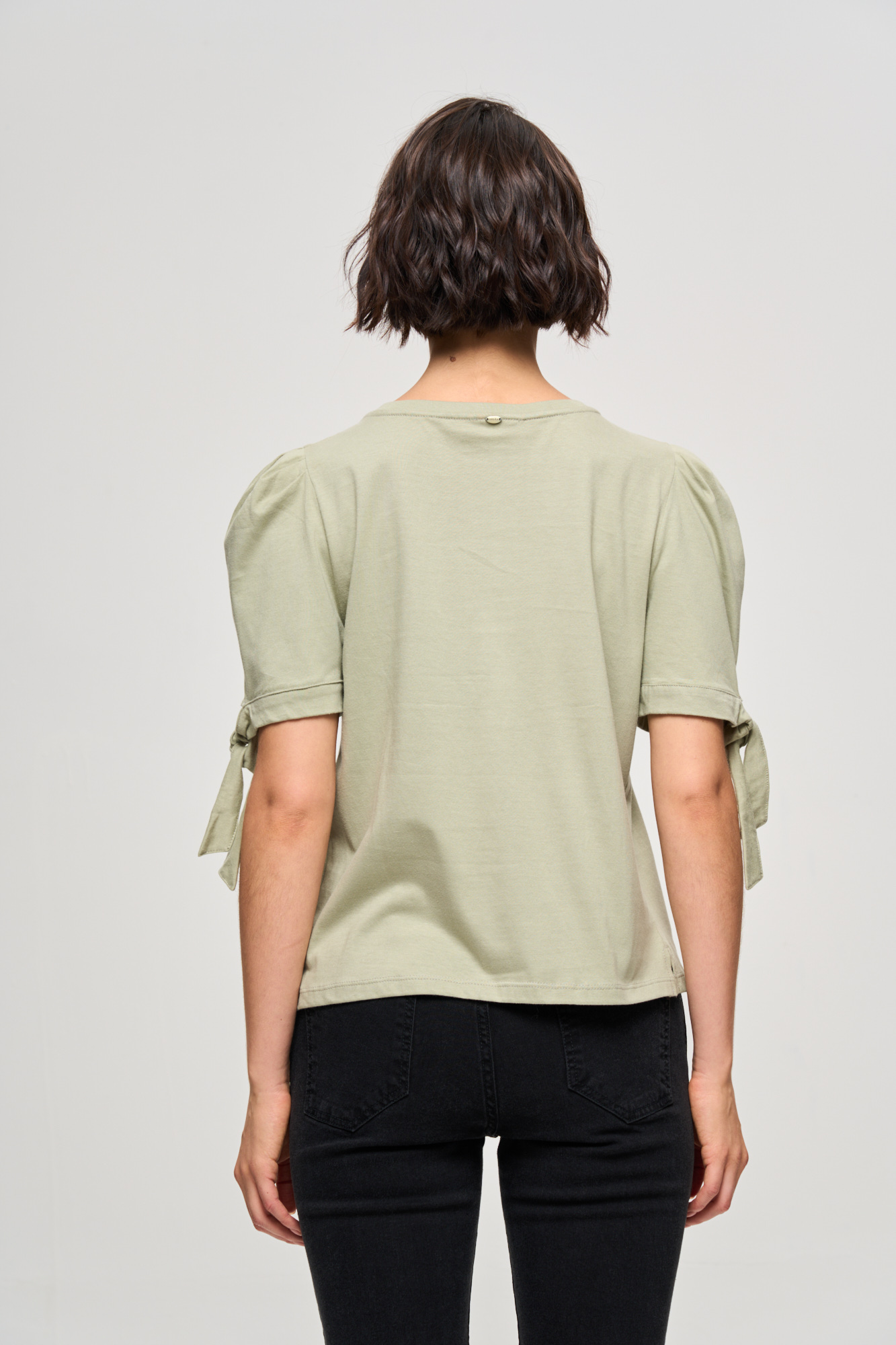 REMERA CON MANGAS PRINCESA Y LAZO VERDE SE