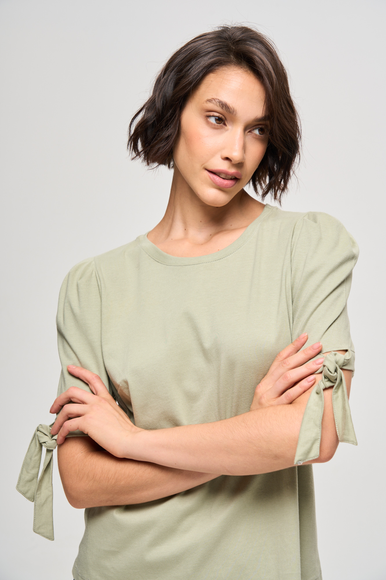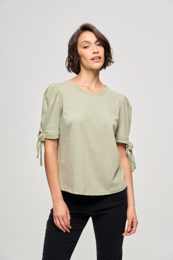 Remera con mangas princesa y un delicado lazo, perfecta para un look romántico y femenino.