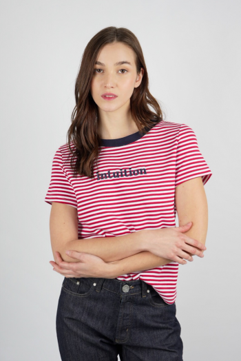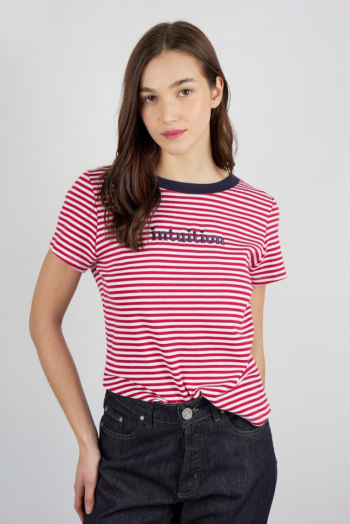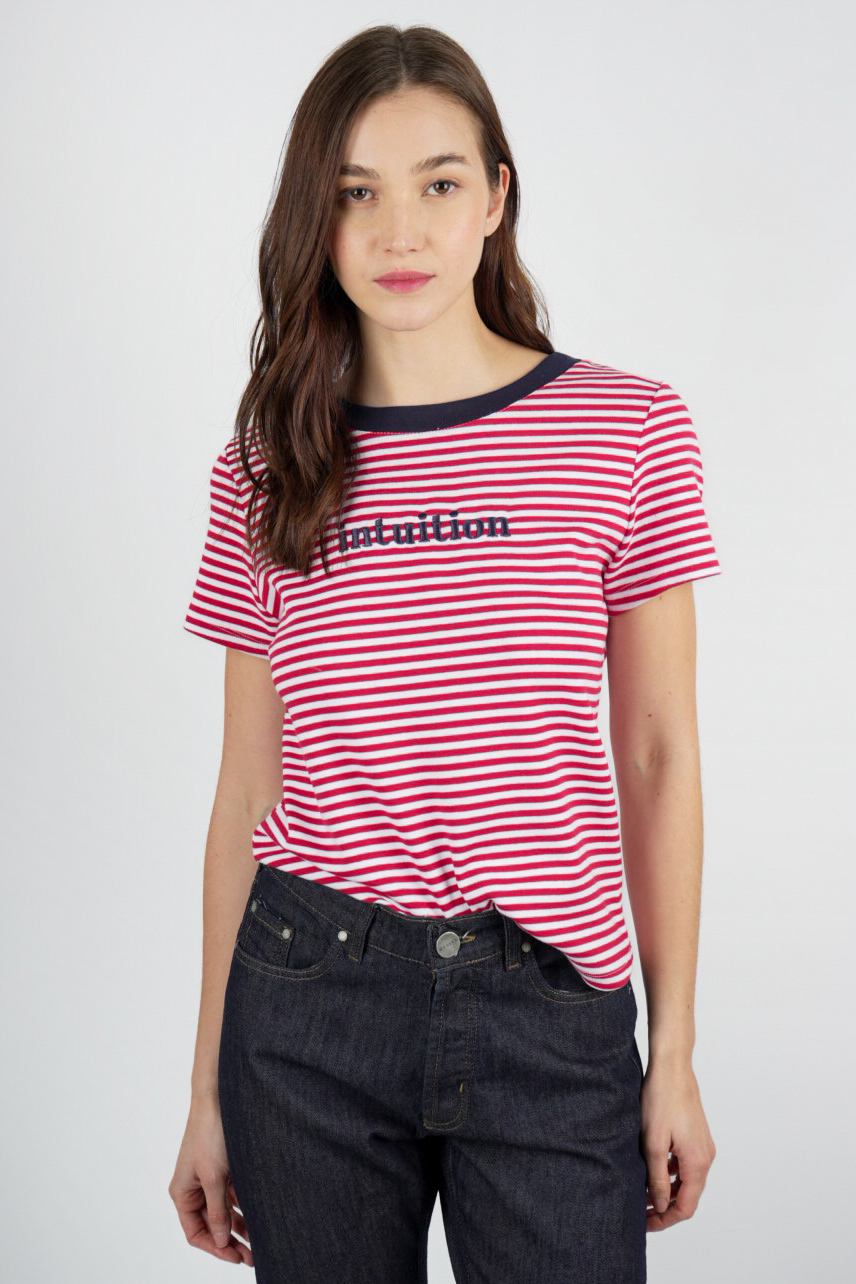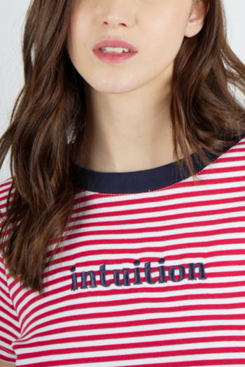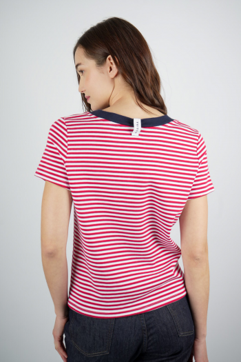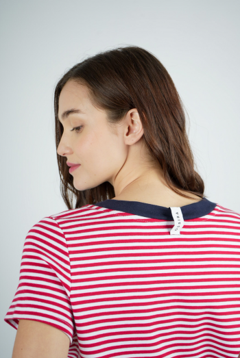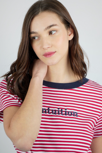 POLERA RAYADA CON ESTAMPADO EN CUELLO