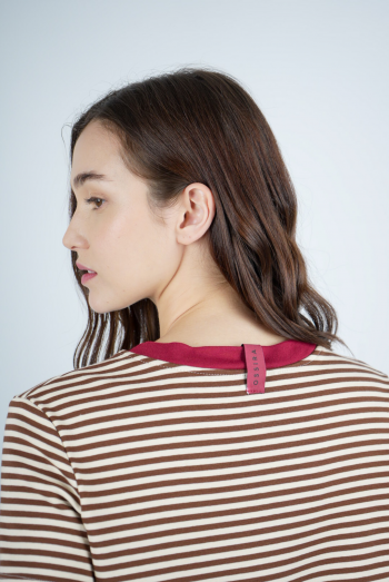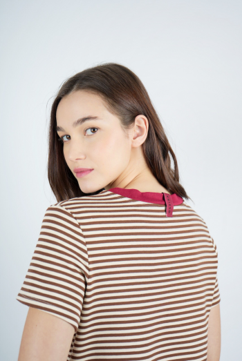 POLERA RAYADA CON ESTAMPADO EN CUELLO