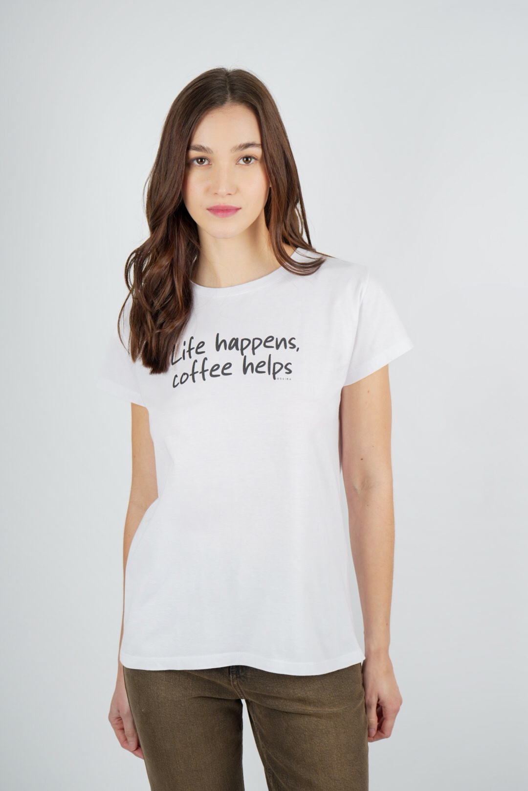 REMERA "LIFE HAPPENS COFFEE HELPS" BLANCO