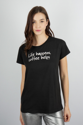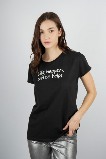 REMERA "LIFE HAPPENS COFFEE HELPS" NEGRO