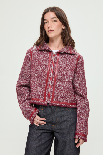 CAMPERA DE PANO CON DETALLES DE CUERO