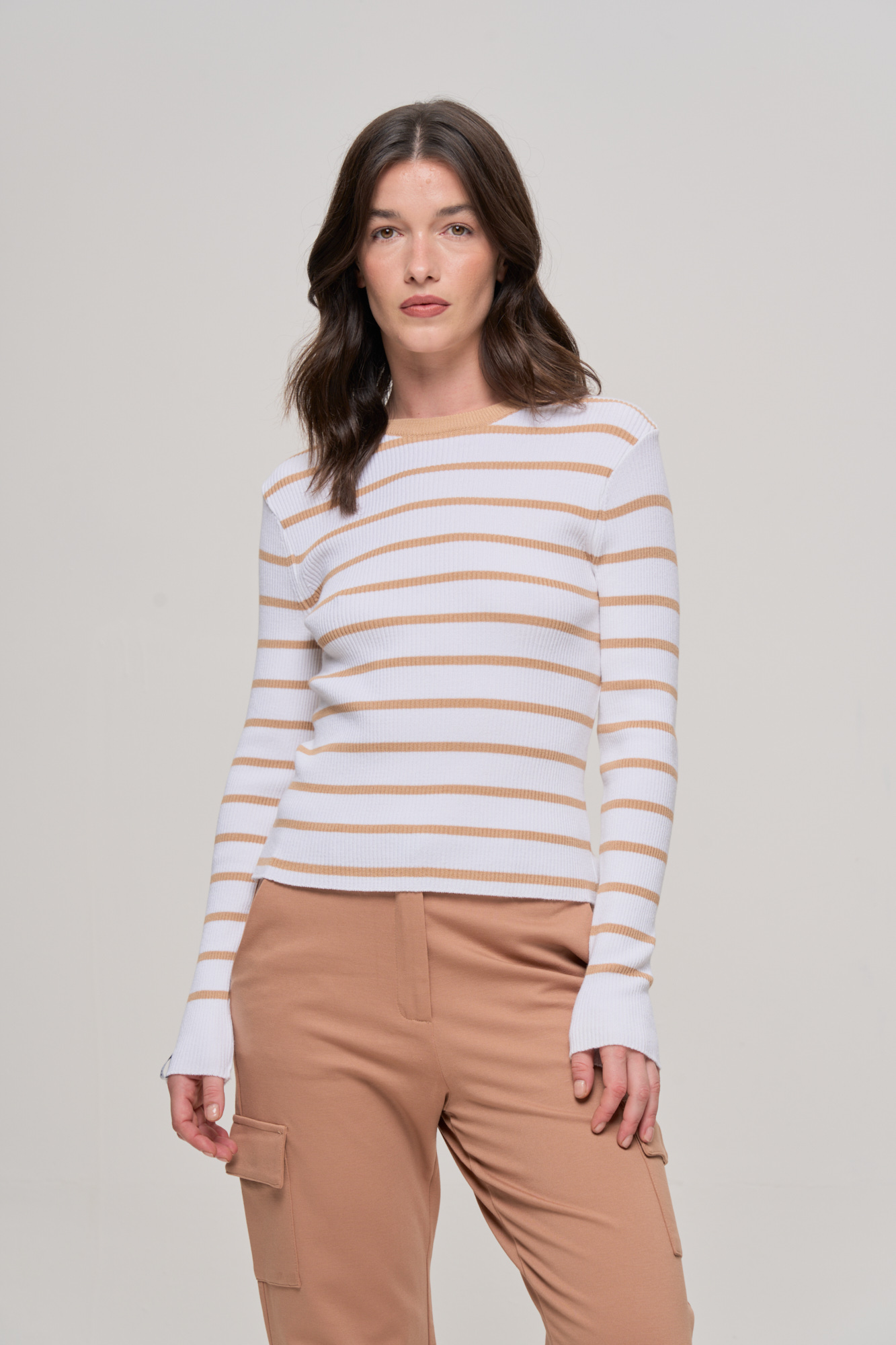 SWEATER RAYADO BEIGE/BLANCO