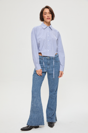 BLUSA DENIM MANGA PRINCESA CON TIRAS