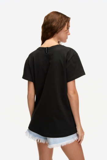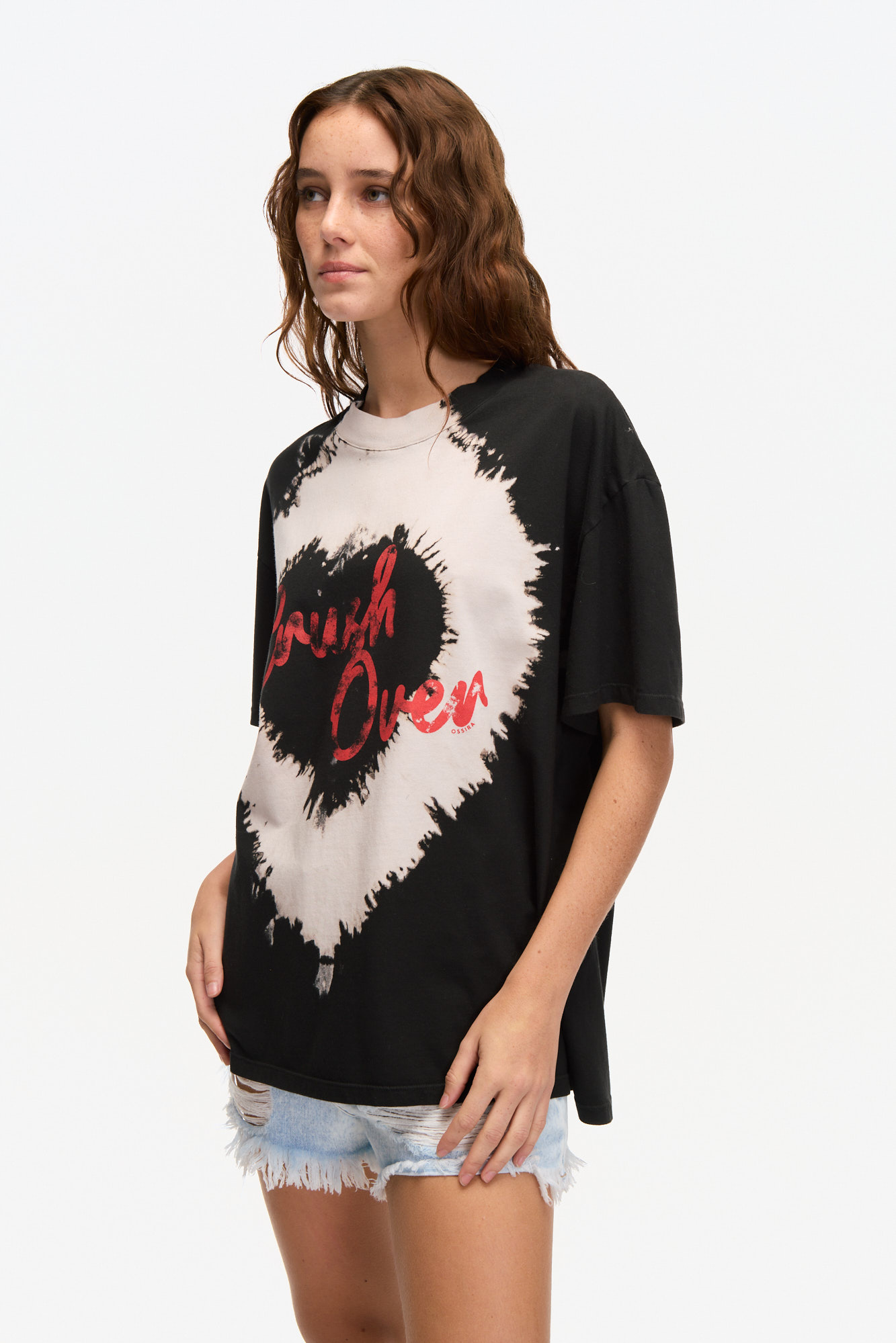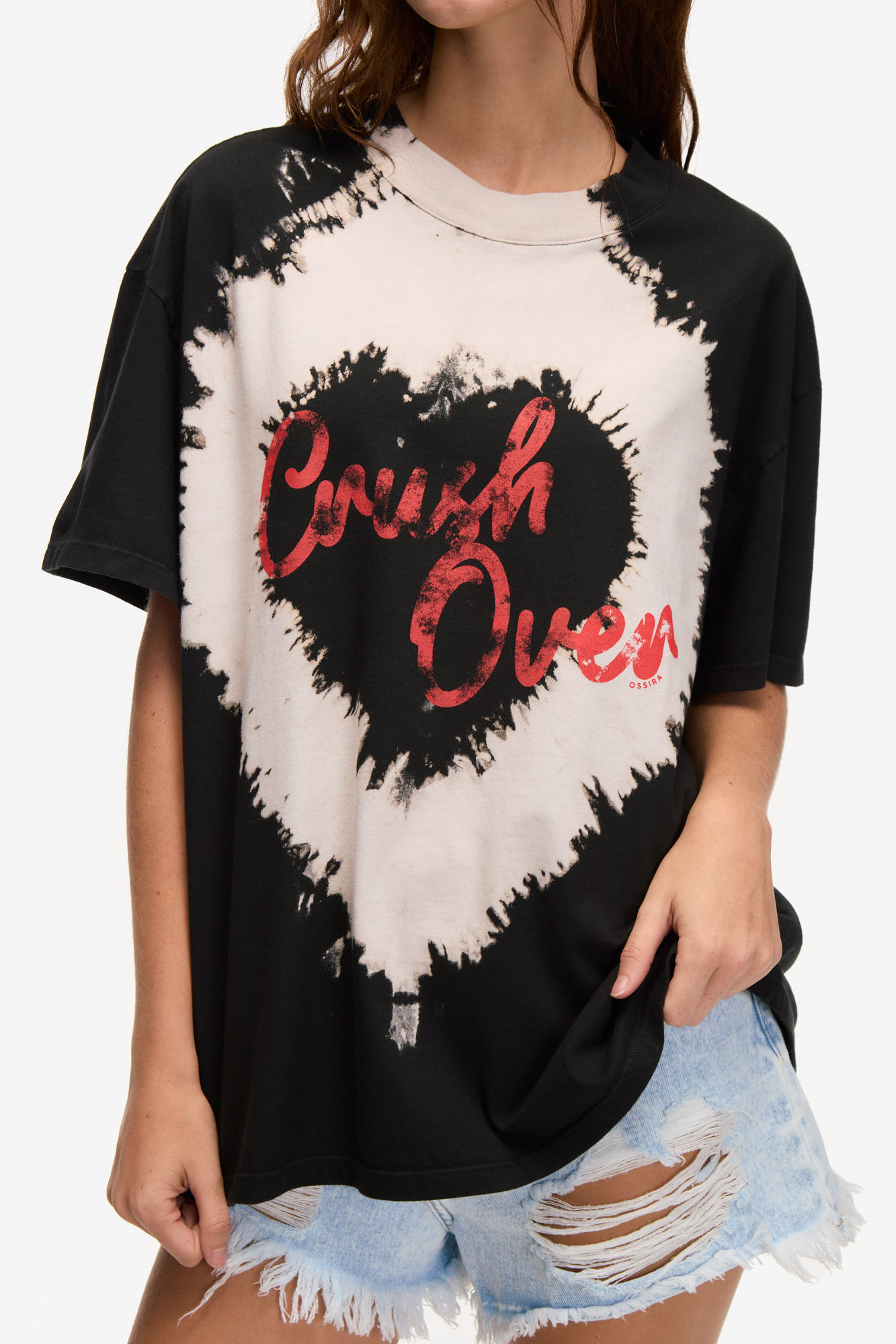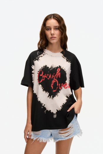 REMERÓN CONFECCIONADO EN TEJIDO DE ALGODÓN CON ACABADO BATIK Y ESTAMPA CENTRAL. POSEE SILUETA HOLGADA, MANGAS CORTAS Y CUELLO REDONDO. PRESENTA GRÁFICO “CRUSH OVER” SOBRE UN FONDO DE EFECTO LAVADO. COMPOSICIÓN: 100% ALGODÓN