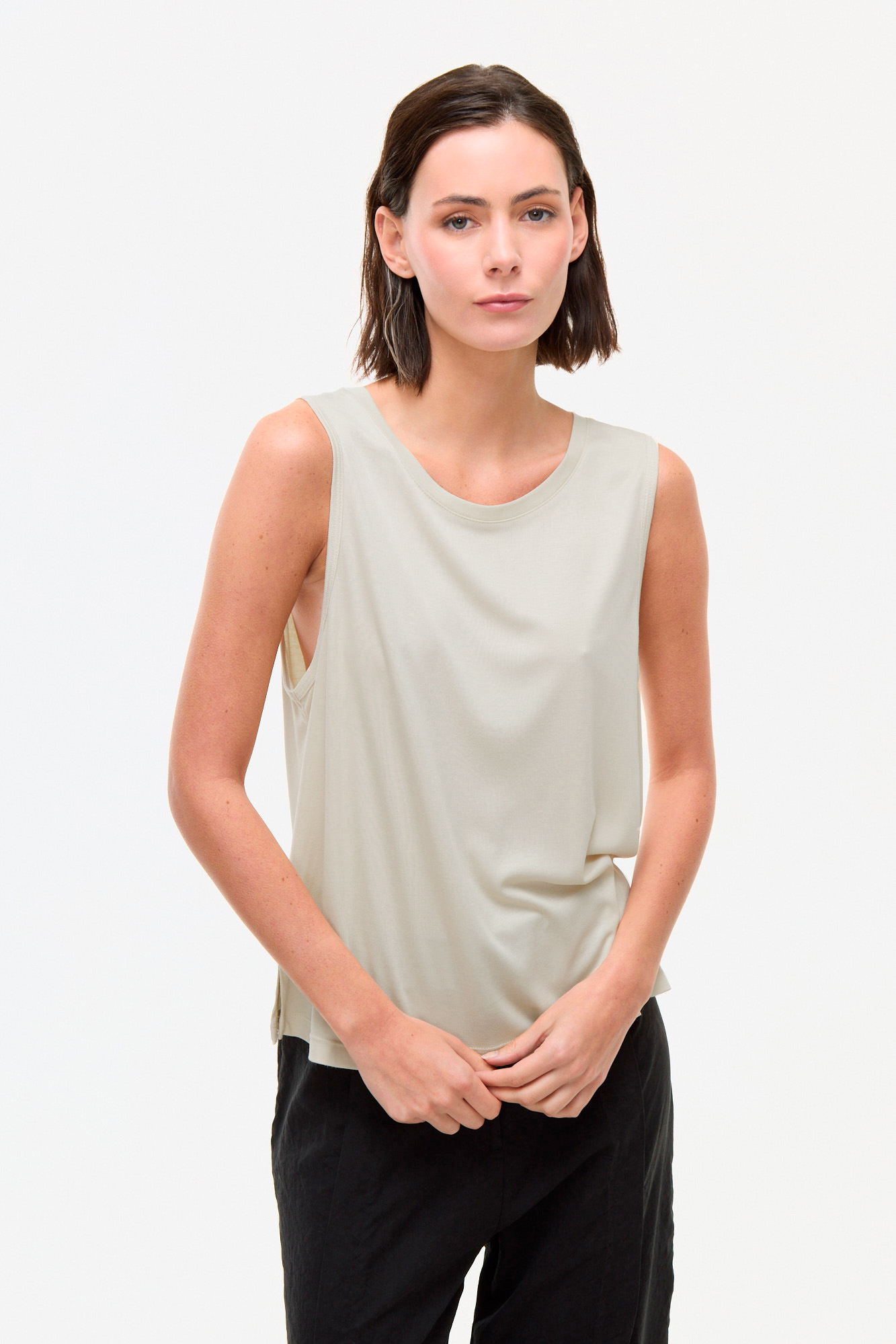 CONFECCIONADA EN JERSEY DE VISCOSA. ESCOTE REDONDO Y SISA AMPLIA. SILUETA RECTA Y HOLGADA CON CAÍDA SUAVE. TERMINACIÓN RECTA CON PEQUEÑAS ABERTURAS LATERALES.