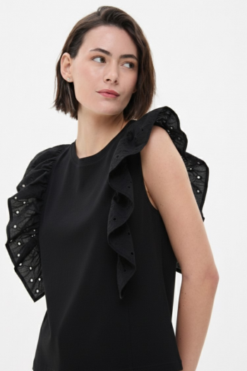 MUSCULOSA CON VOLADO DE BRODERIE NEGRO