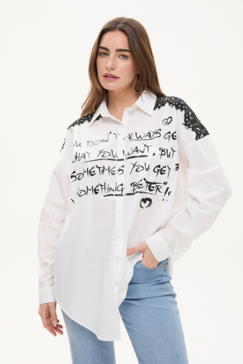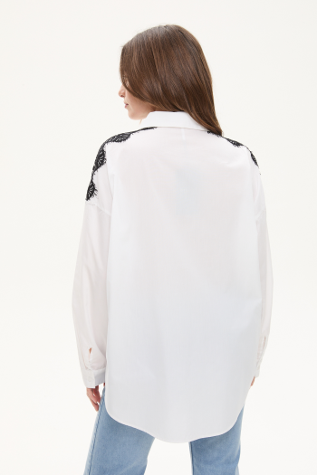 CAMISA POPLIN ESTAMPADA CON PUNTILLA BLANCO