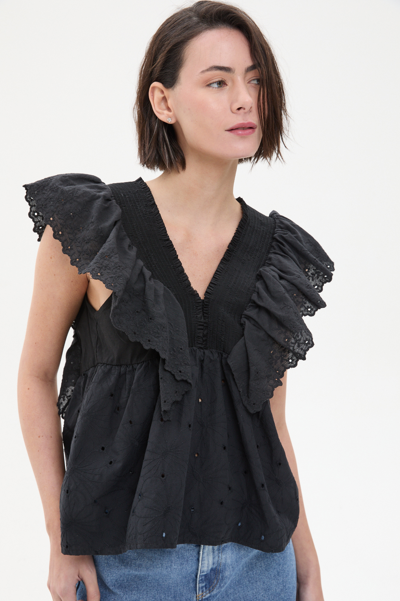 BLUSA COMBINADA DE BRODERIE CON PUNTILLA NEGRO