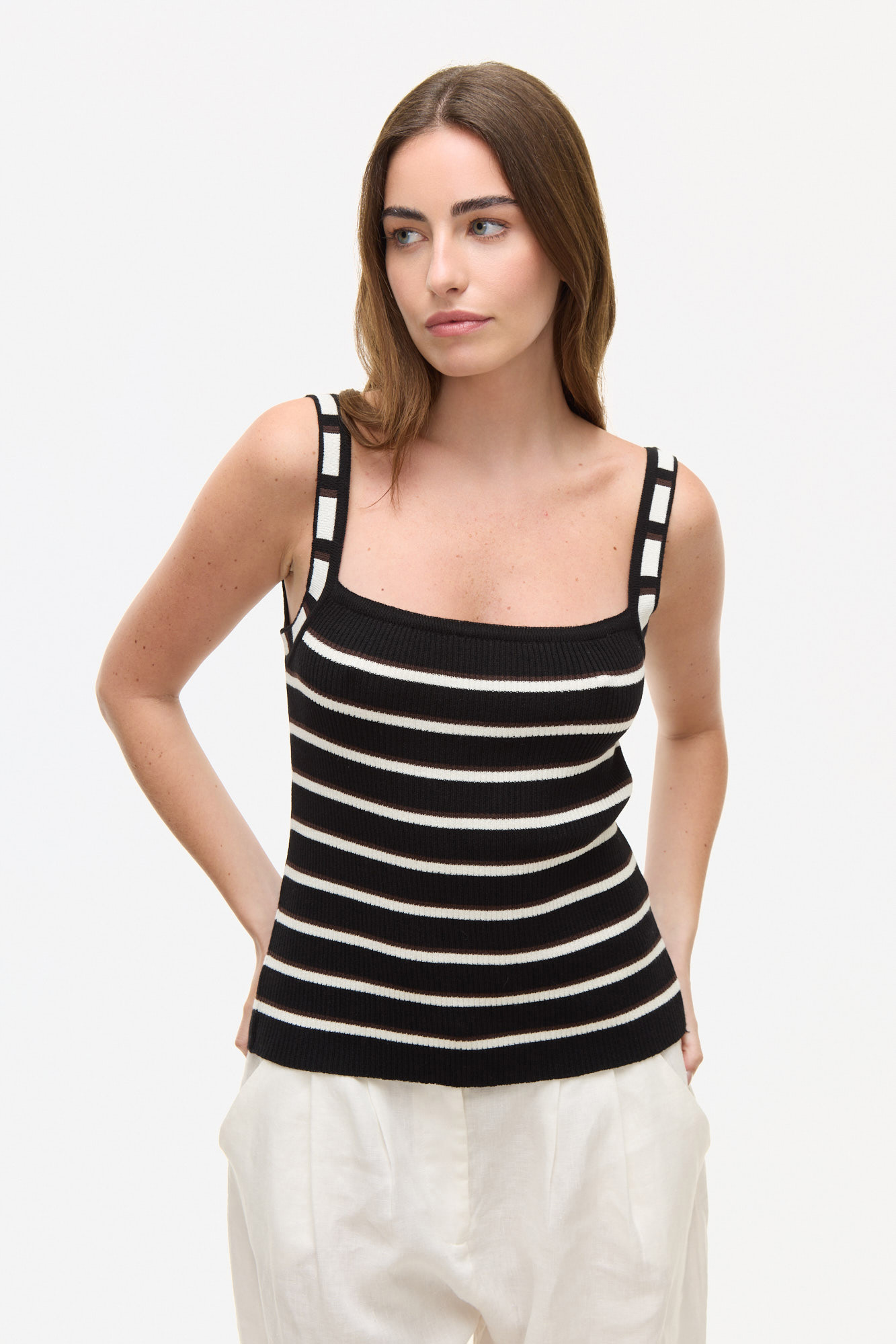 POLERA RAYADA CON ESTAMPADO EN CUELLO