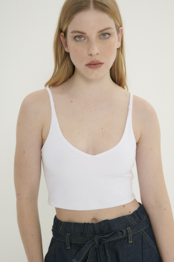 TOP EN TEJIDO LIVIANO TEXTURADO. DISEÑO HOMBROS DESCUBIERTOS, CALCE ENTALLADO. TERMINACIÓN CON VOLADO EN EL RUEDO Y ESTAMPA RAYADA EN TONOS SUAVES.