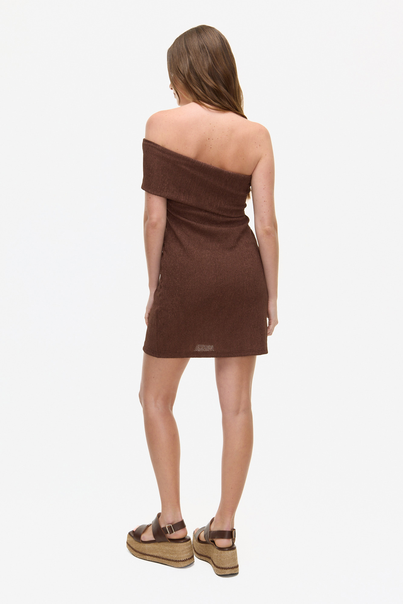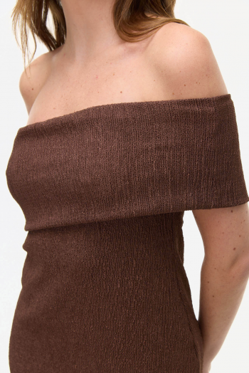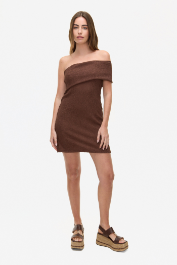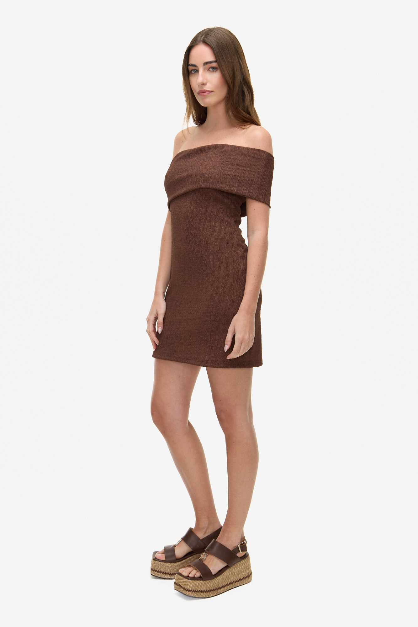 VESTIDO CORTO HOMBROS DESCUBIERTOS CHOCOLATE