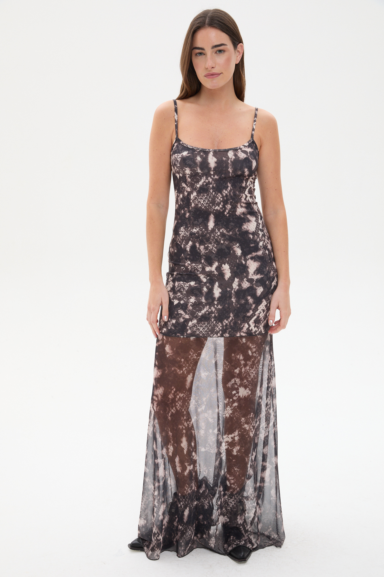 VESTIDO LARGO ESTAMPADO COMBINADO NEGRO