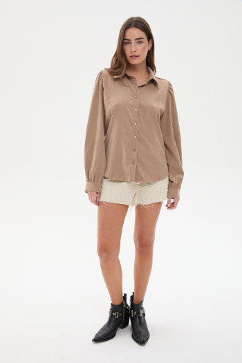 SHORT GABARDINA CON LENTEJUELAS CRUDO