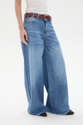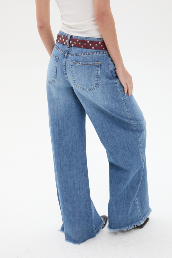 PANTALÓN DENIM ANCHO DESFLECADO LAVADO