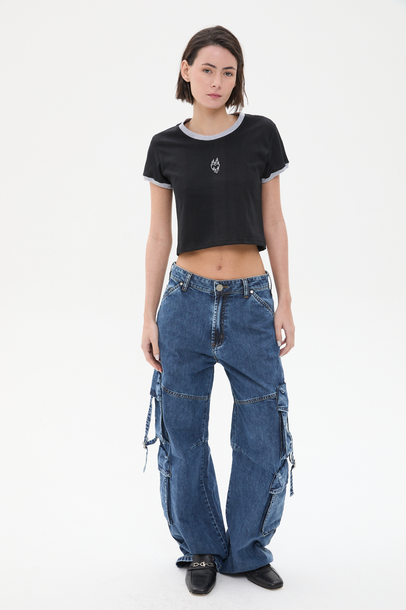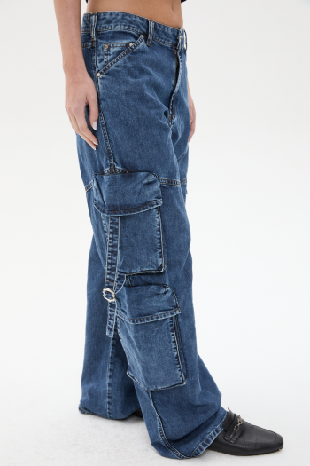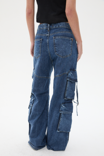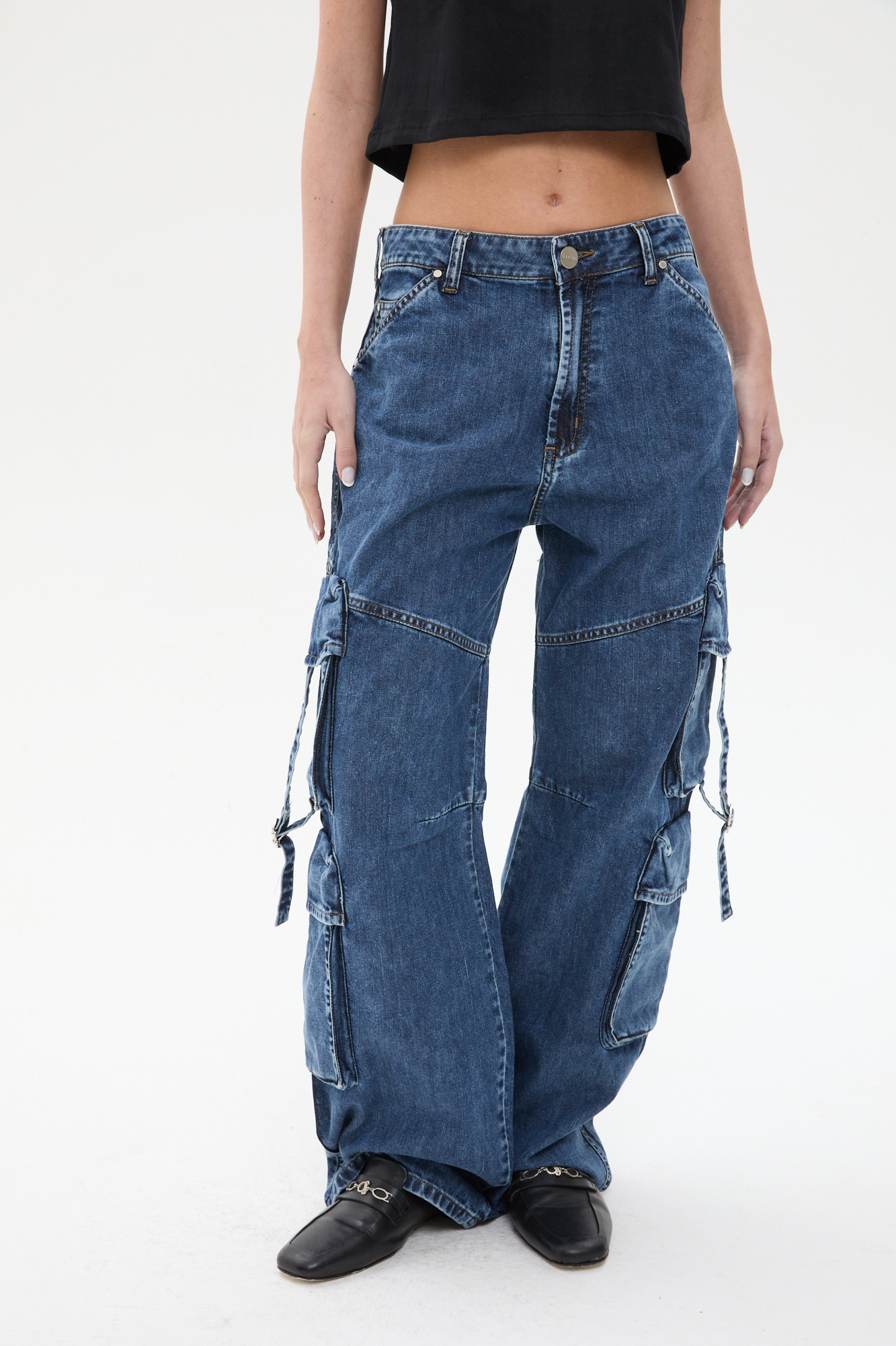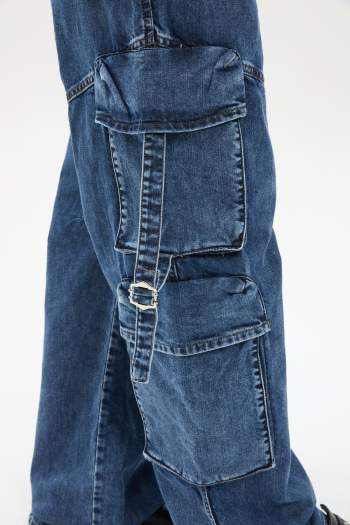 PANTALÓN DENIM CARGO CON HEBILLAS LAVADO