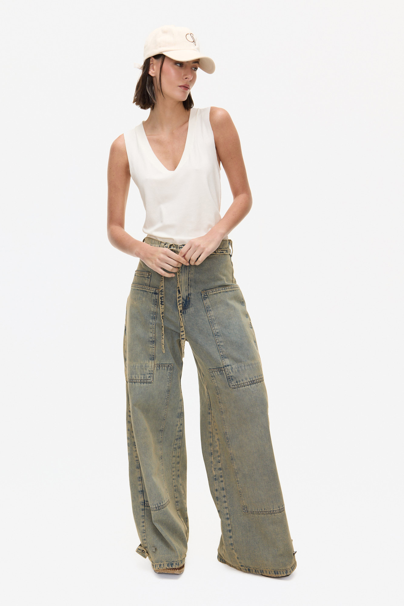 PANTALÓN TRENDY COMBINADO CON CUERO ECOLOGICO
