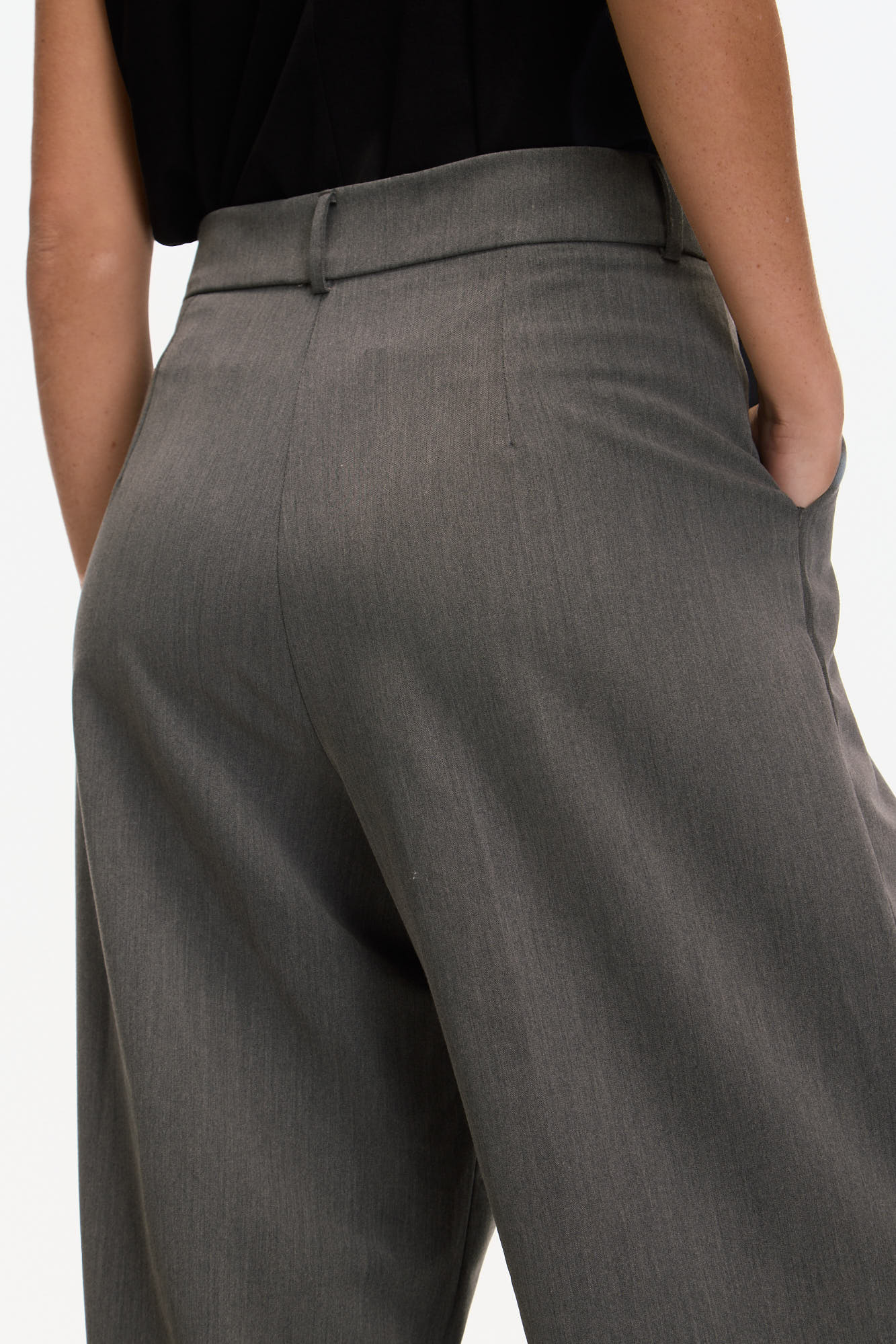 CONFECCIONADO EN TEJIDO DE RAYÓN CON PORCENTAJE DE POLIÉSTER, DE CAÍDA SUAVE Y ASPECTO SASTRERO. DISEÑO DE PIERNA ANCHA, TIRO MEDIO Y CALCE RELAJADO. CUENTA CON BOLSILLOS LATERALES, PRETINA CON PASACINTOS Y CIERRE FRONTAL CON BOTÓN.
