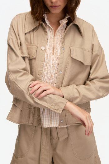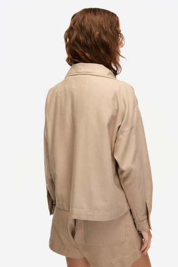 CONFECCIONADA EN GABARDINA DE ALGODÓN, DE TEXTURA FIRME Y SUAVE. DISEÑO OVERSIZE CON CUELLO CAMISERO Y BOTONES A LA VISTA. CUENTA CON BOLSILLOS PLAQUETAS EN EL FRENTE QUE APORTAN ESTILO UTILITARIO. TERMINACIÓN RECTA Y CALCE CÓMODO. 100% ALGODÓN.