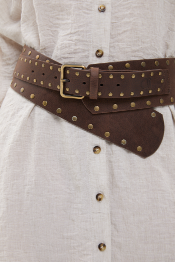 FAJA DE CUERO CON TACHAS CHOCOLATE