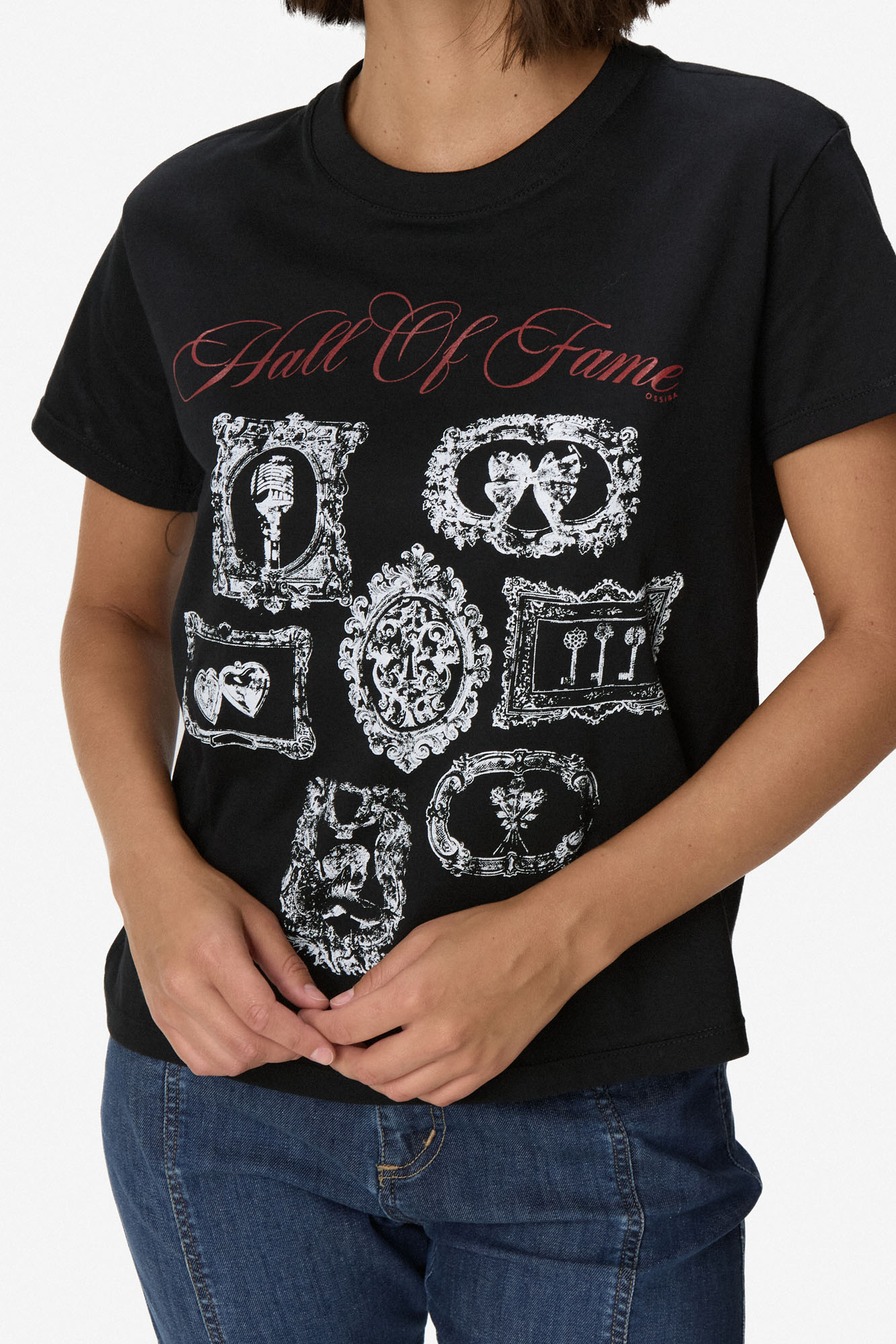 Remera de algodón de calce recto, con cuello redondo y mangas cortas. Presenta estampa central con tipografía y motivos gráficos en contraste. 100% algodón.