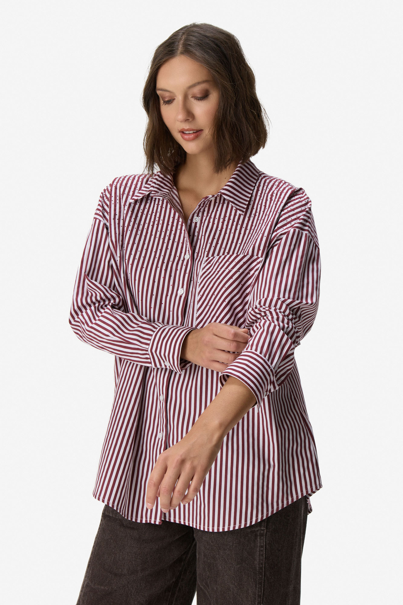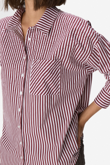Camisa de manga larga en algodón rayado con cuello clásico y cartera de botones a tono. Presenta bolsillo aplicado en el frente. Un diseño versátil y atemporal para el día a día. 100% algodón.