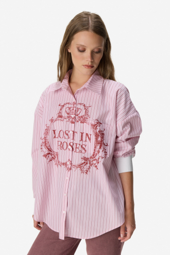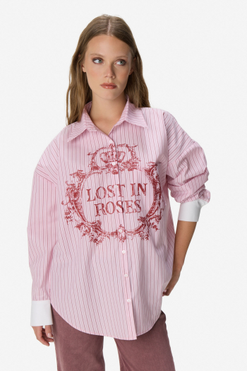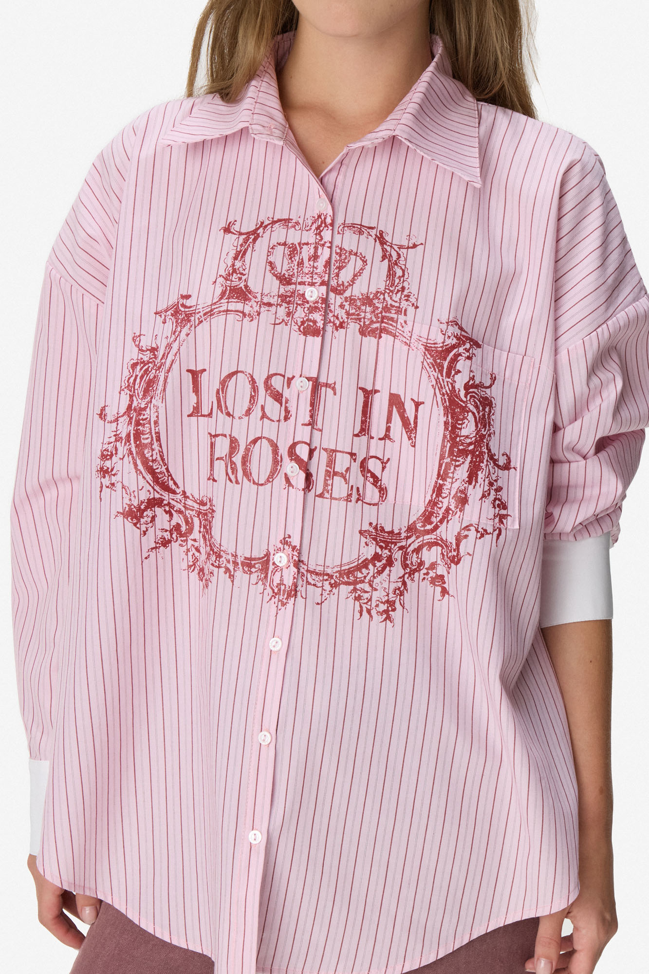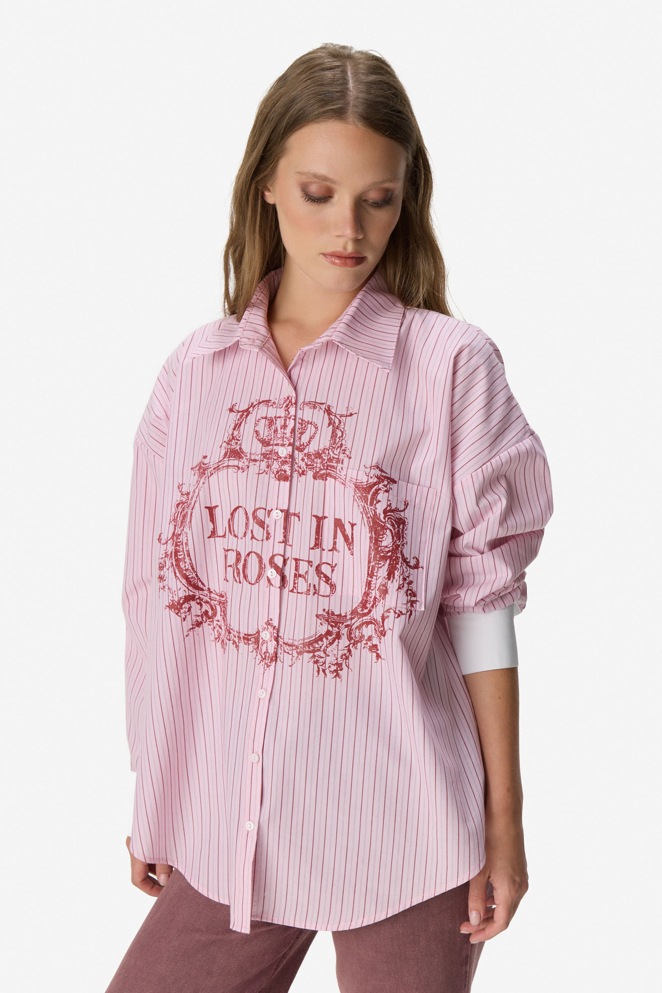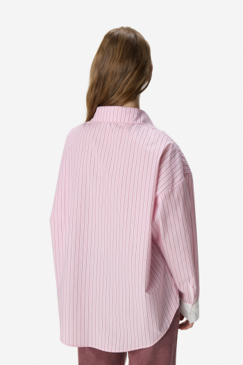 Camisa confeccionada en algodón, de calce relajado y largo irregular. Detalle de estampa frontal y puños en contraste. Algodón 100%.
