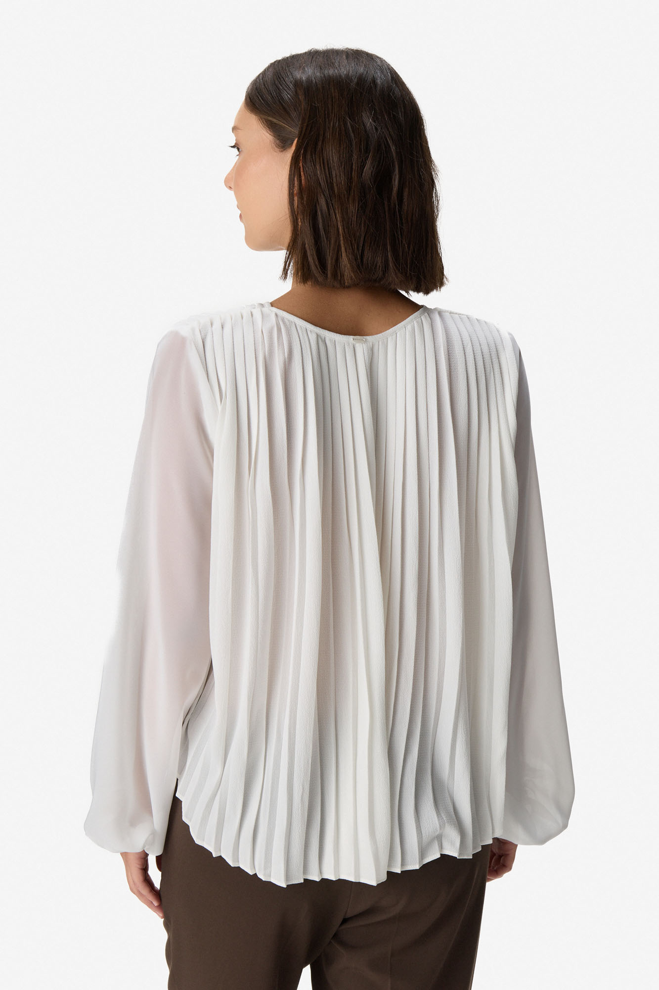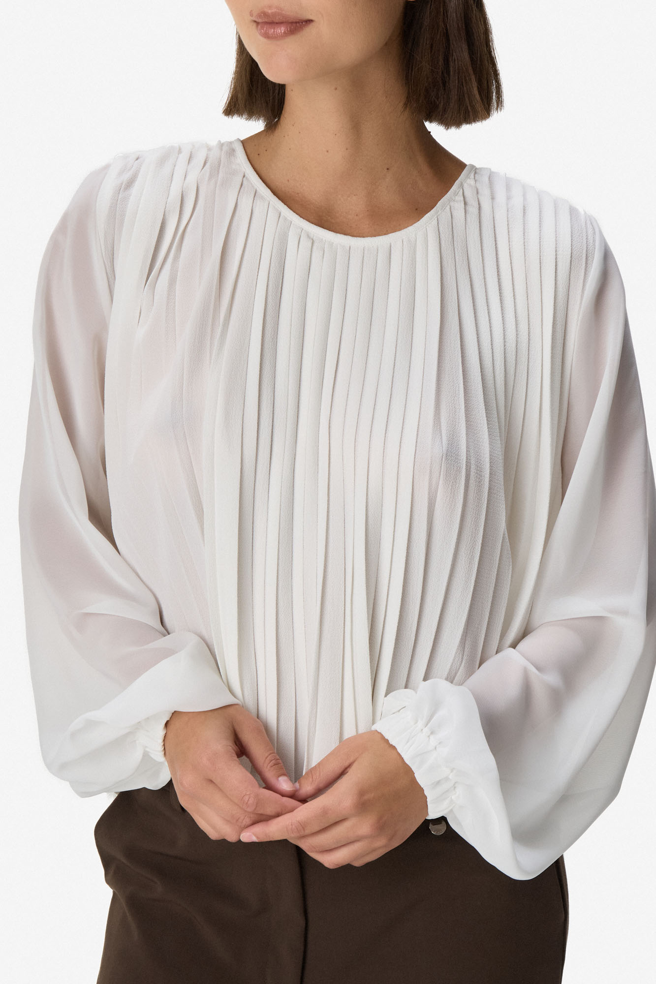 BLUSA PLISADA DE CREPE Y GASA BLANCO
