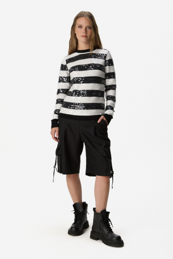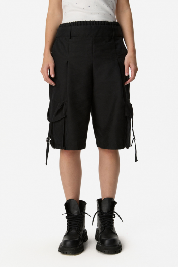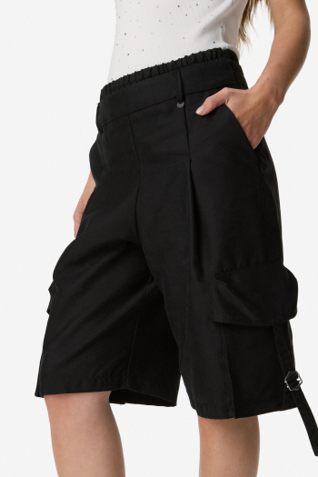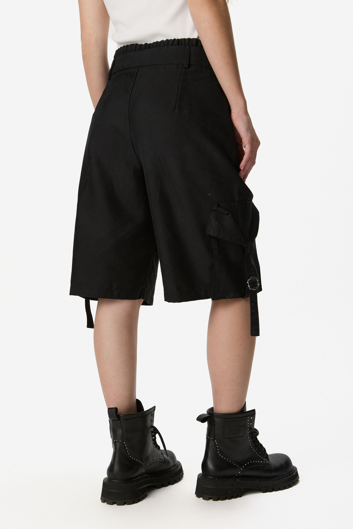 Bermuda de calce amplio y textura suave con caída fluida que aporta frescura y movimiento. Presenta tiro medio y cintura elastizada que se adapta cómodamente al cuerpo. Cuenta con bolsillos laterales tipo cargo que suman funcionalidad y un aire utilitario, ideal para looks urbanos y relajados. 62% tencel, 38% poliéster.