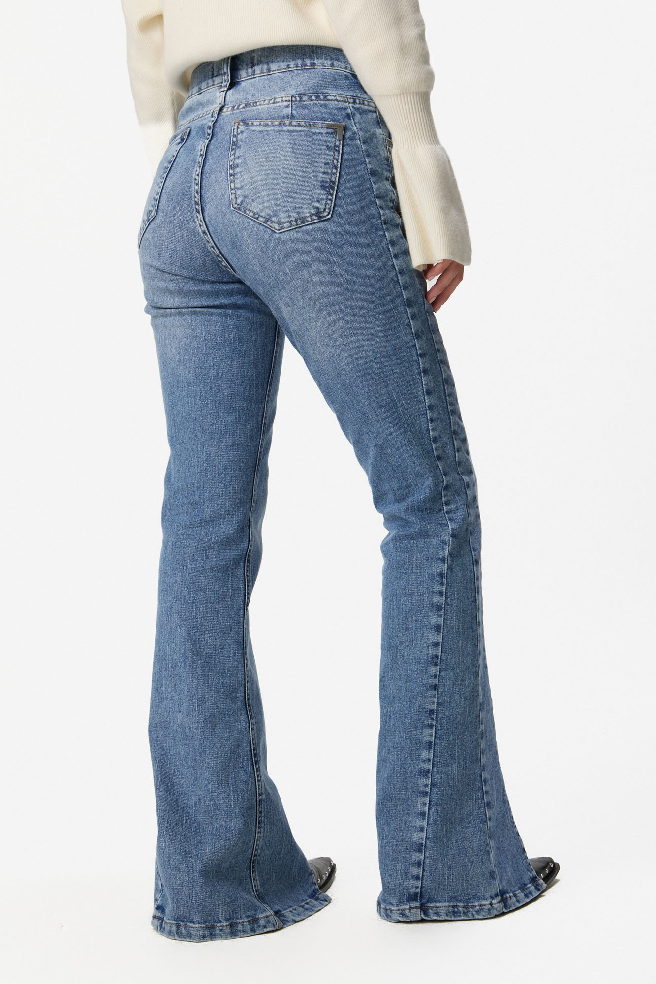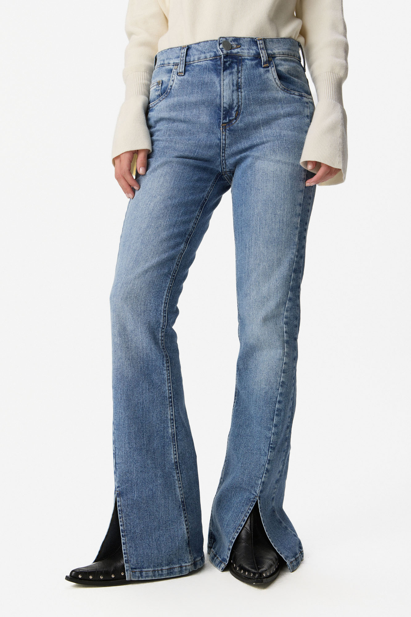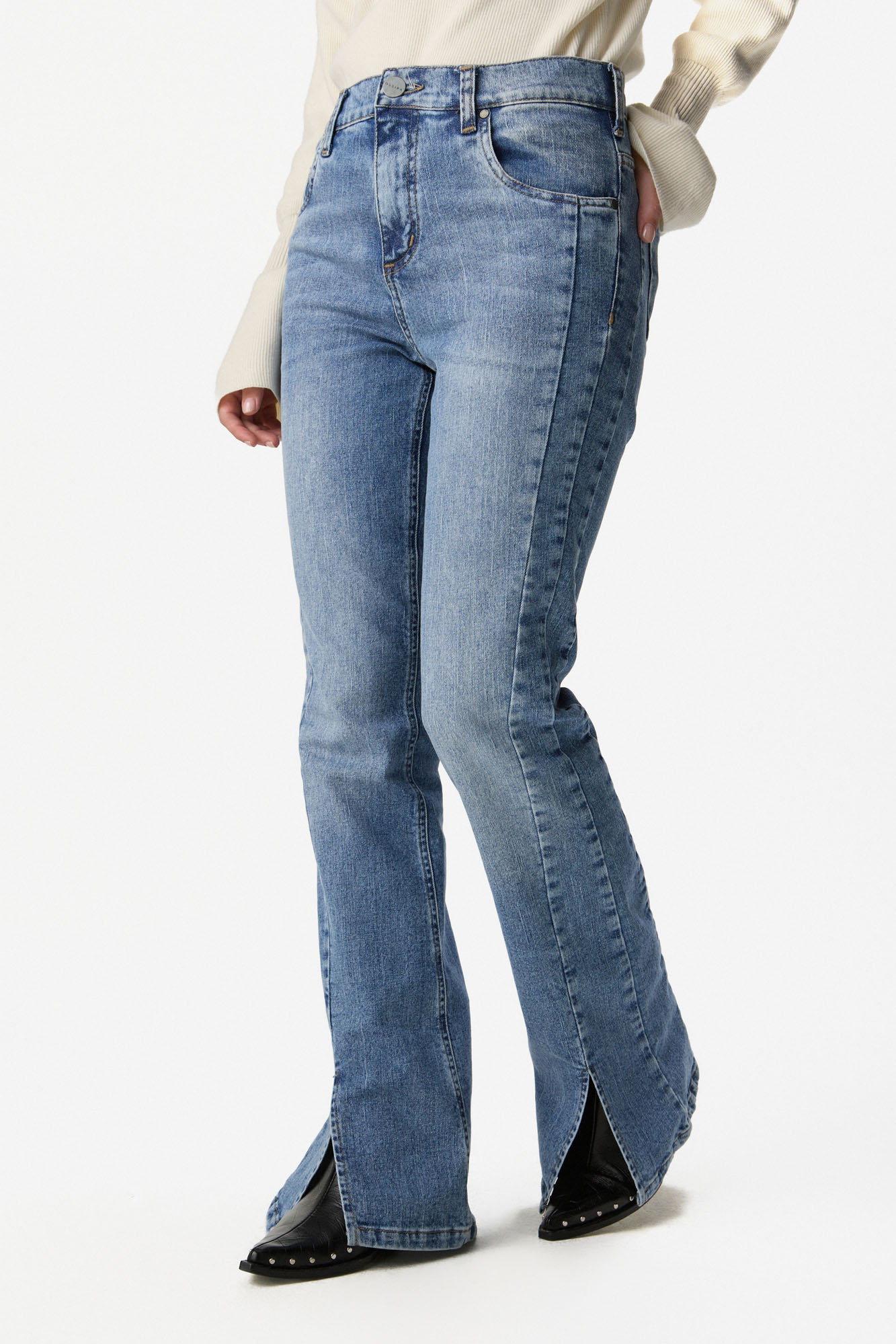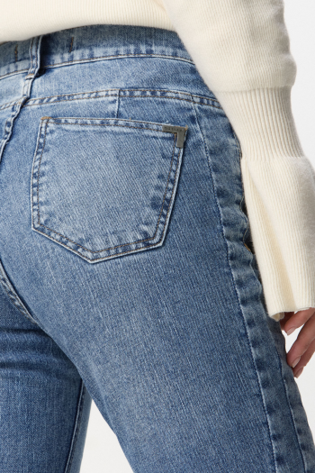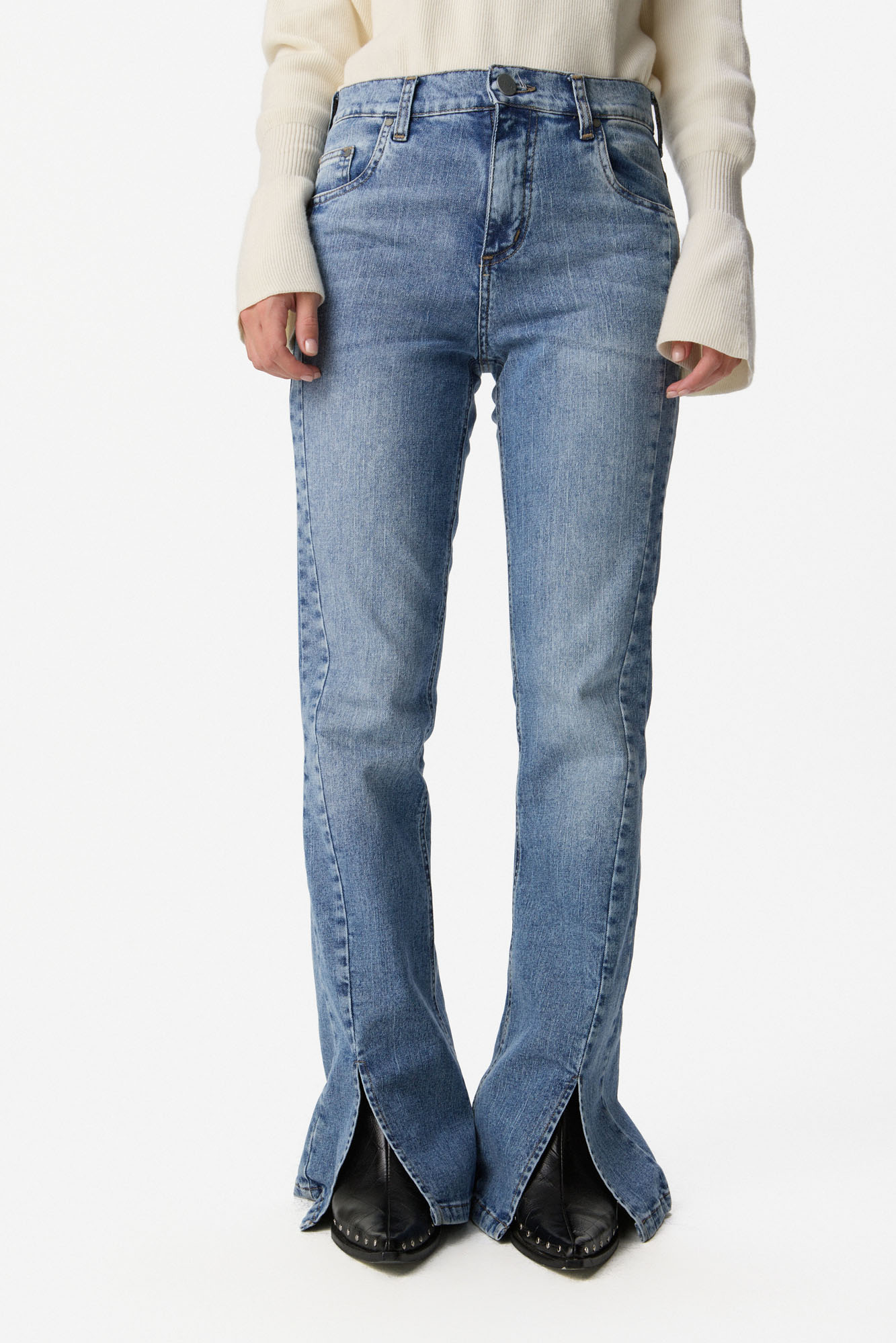 Pantalón de denim con lavado medio. Calce slim que se adapta al cuerpo y estiliza la silueta. Diseño de tiro medio con bolsillos funcionales y cierre frontal. Detalle de tajos en el ruedo que aportan un toque moderno y distintivo. 78% Algodón, 20% Poliéster, 2% Elastano.