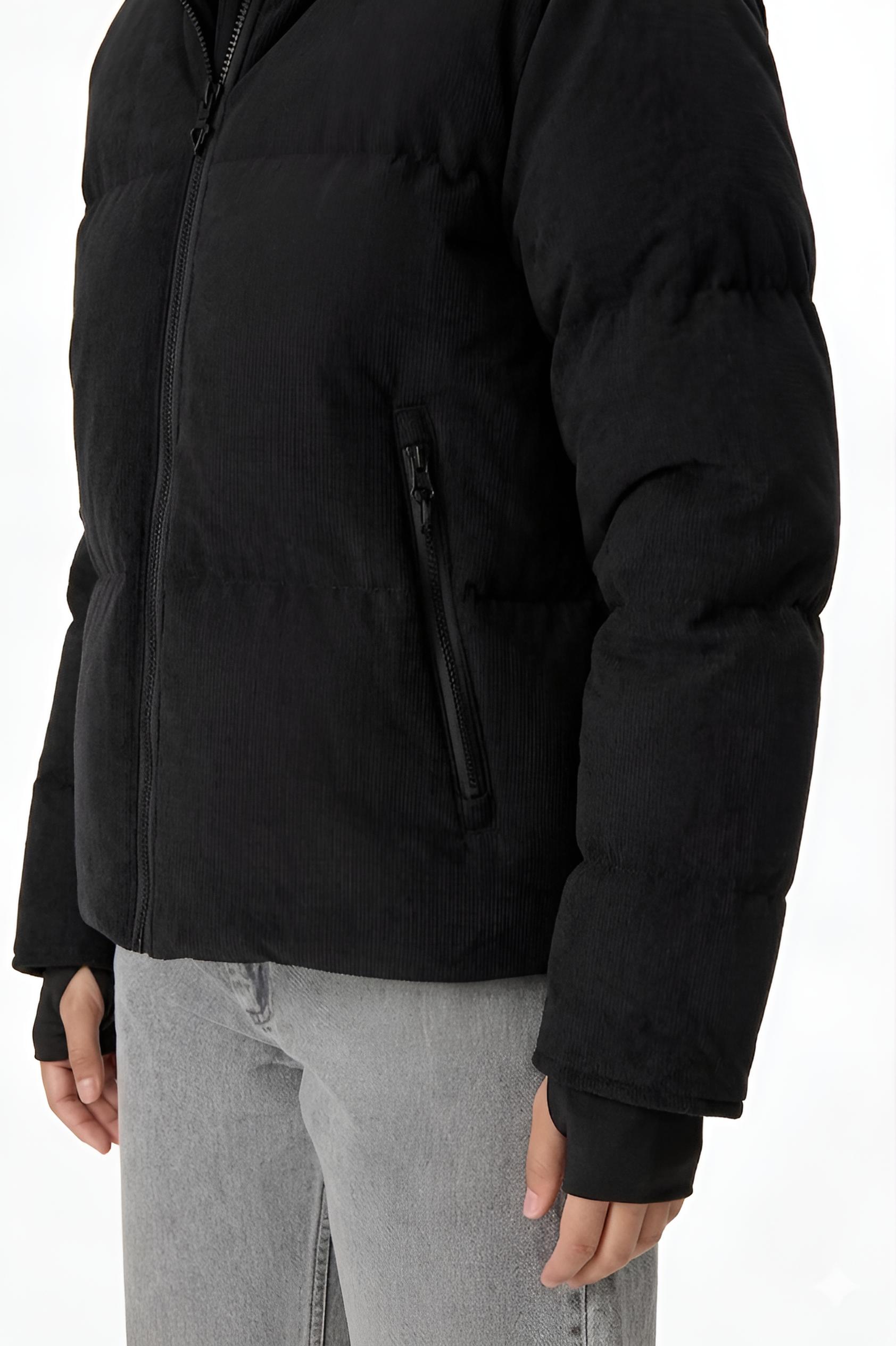 PUFFER CON PUÑOS DE LYCRA NEGRO