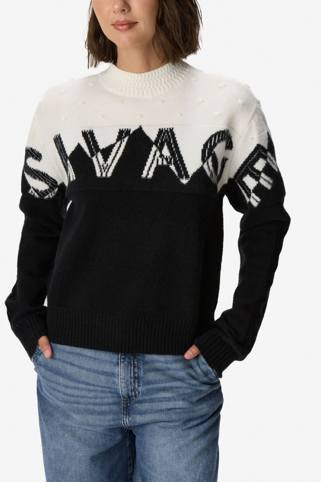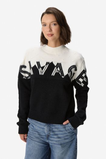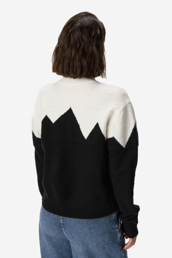 Sweater de manga larga en tejido de punto. Calce regular, cómodo y versátil para el uso diario. Diseño con cuello alto y combinación bicolor con motivo gráfico en el frente que aporta un estilo moderno y distintivo. Terminaciones en rib en cuello, puños y ruedo. Confeccionado en 45% acrílico, 29% PBT y 26% nylon.
