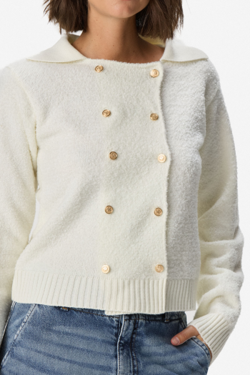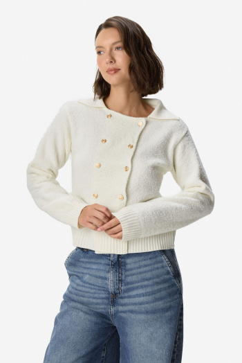 Cardigan tejido de manga larga en mezcla de poliéster y acrílico. Calce regular, cómodo y versátil para el uso diario. Diseño con cuello redondo y cierre frontal con botones metálicos que aportan un detalle moderno y elegante. Terminaciones acanaladas en puños y ruedo que mejoran el ajuste. 50% Poliéster 50% Acrílico.