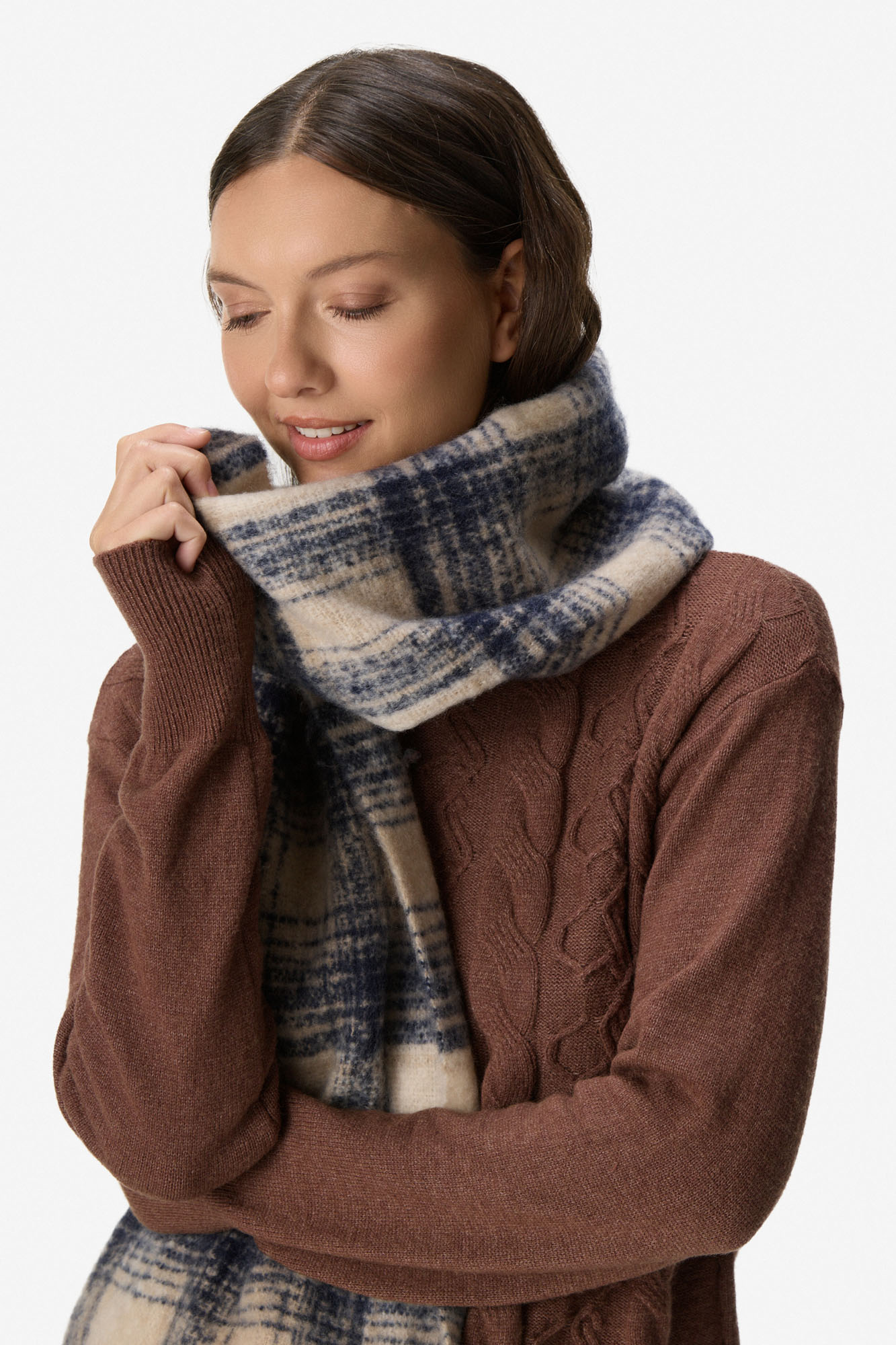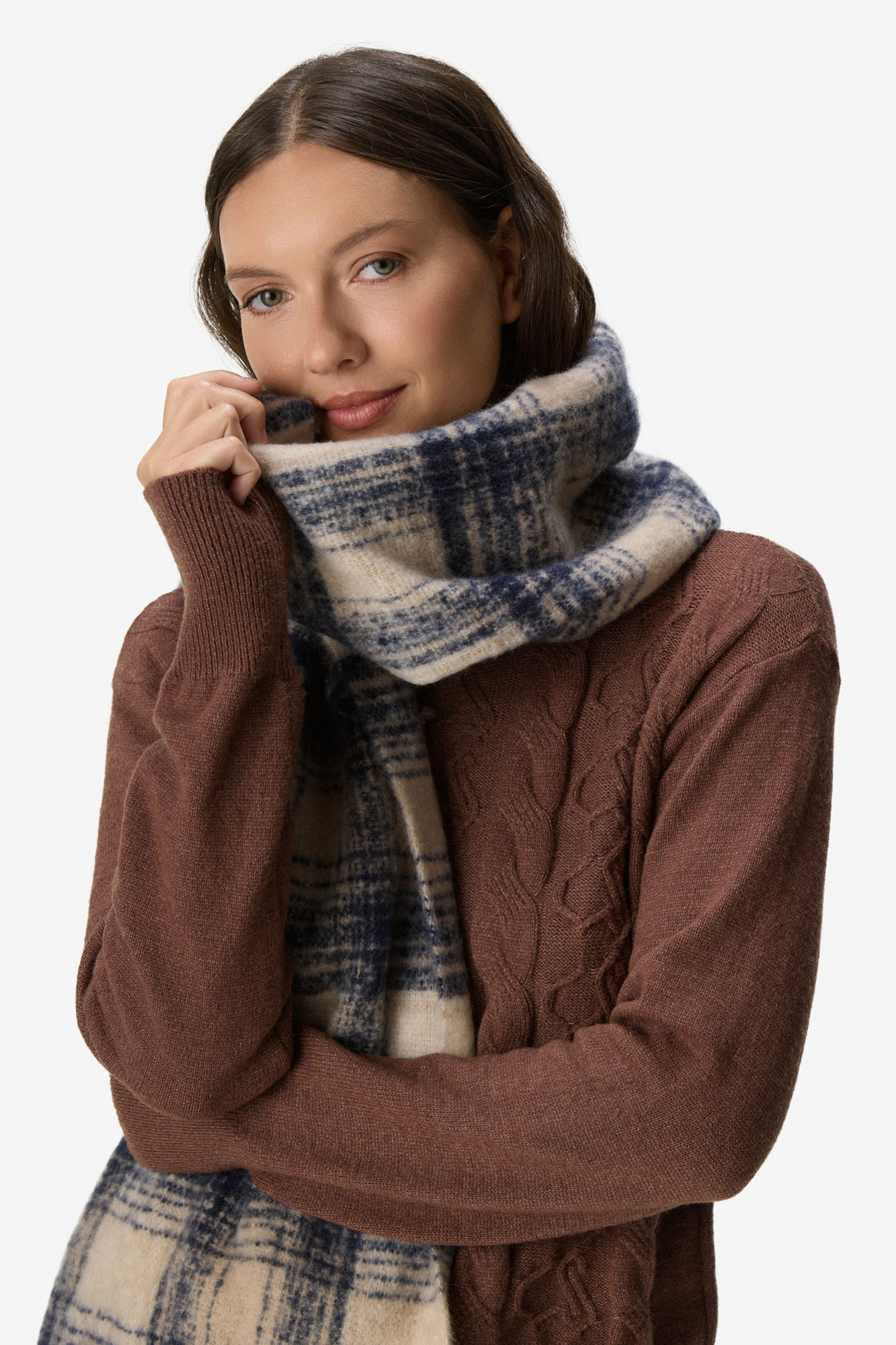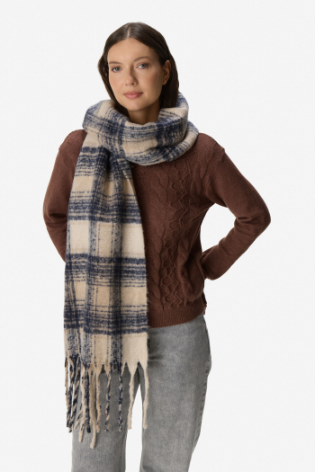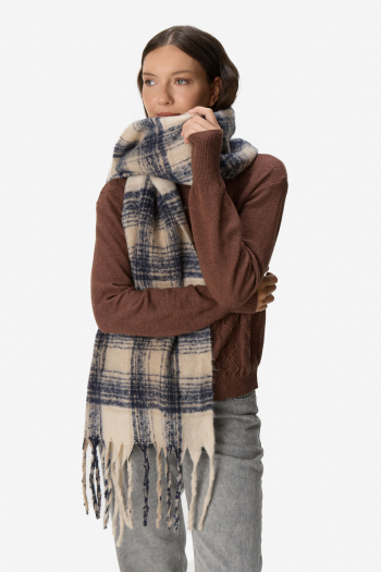 Bufanda de poliéster en formato amplio. Estampa cuadrille con meticuloso detalle y alto nivel de resolución, que aporta carácter y sofisticación. Terminaciones desflecadas. 100% poliéster.